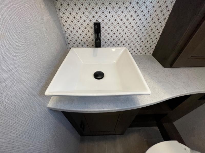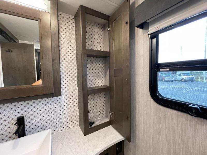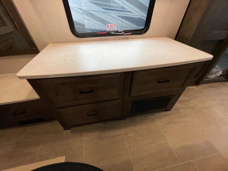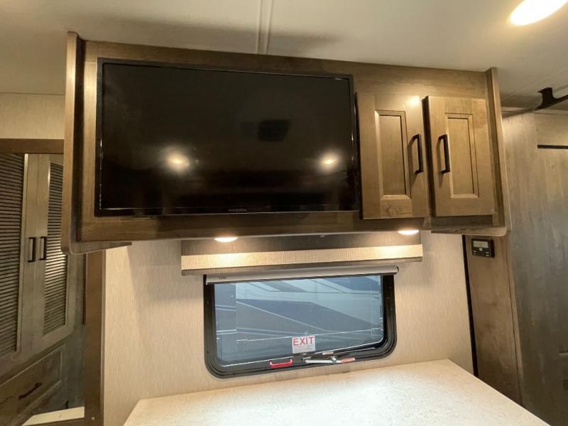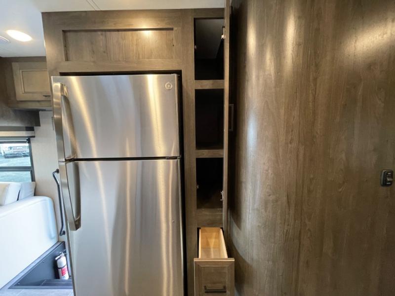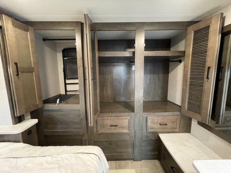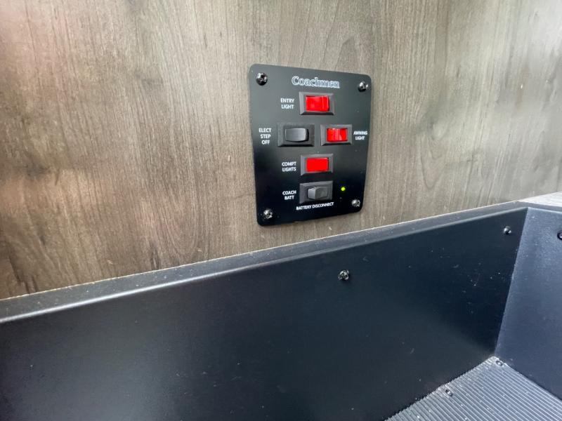 The Sportscoach SRS Class A diesel motorhome by Coachmen sits on a straight rail Freightliner chassis with a 340 HP ISB Cummings rear diesel engine that will deliver power to your excursions. Each coach features chassis air suspension and air brakes, an 8,000 lb. towing hitch, and an outside entertainment center with a 40" TV to watch the big game outdoors. Some of the electrical, heating, and AC amenities you will appreciate are the 6.0 kW diesel generator, the 100 watt solar panel with a controller, and the two 15,000 BTU A/C units. The galley features convenient pop-up recept with USB ports, stylish kitchen backsplash, and a stainless steel farmhouse style sink that will make clean-up easier than ever. Comfort will come easy with the upgraded mattress in the bedroom, along with a residential style headboard and a king bed. Affordable, powerful, and comfortable; what's not to love about the Sportscoach SRS Class A diesel coach!