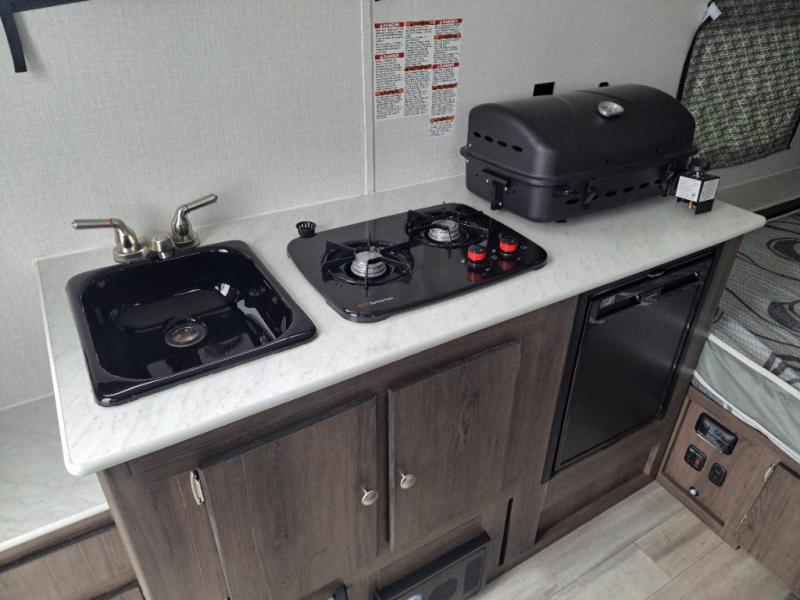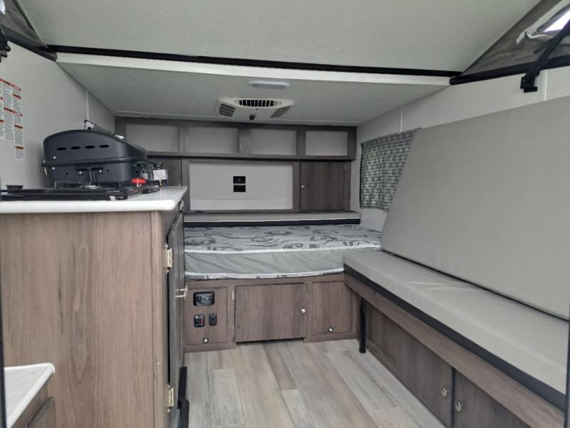 The Clipper Camping Trailers by Coachmen are your ticket to fun and adventure. These pop-up campers are easy to tow, easy to store, and easy to love! You'll appreciate stabilizer jacks to keep your camper secure at the campground, plus an outside LP quick connect for an outside griddle or space heater. The patio awning will provide shade during the day, and the 20k BTU furnace will allow you to camp during the colder months. These campers also include the Power Package that comes with a USB charging port, solar prep, a 12V power fan, and more features to make your trips hassle-free!