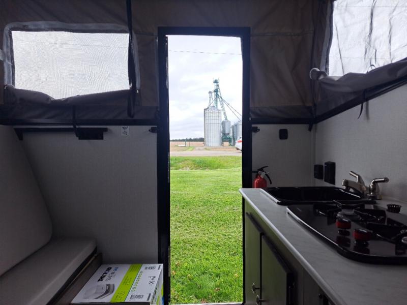 You and your spouse or buddies can take this Clipper Express with you camping, fishing or hunting! There is an RV queen bed up front and a gaucho with a flip-up bunk above offering sleeping space for four, a countertop with storage below, a two burner range for warm meals and a 12V 1.7 cu. ft. refrigerator for drinks. You will also love the Off-Road Package with a flipped axle and 15" off-road tires!