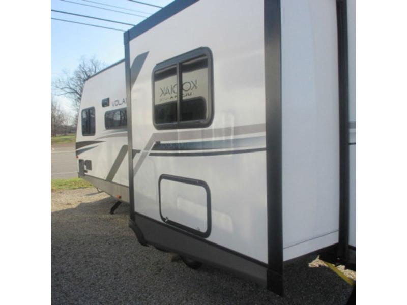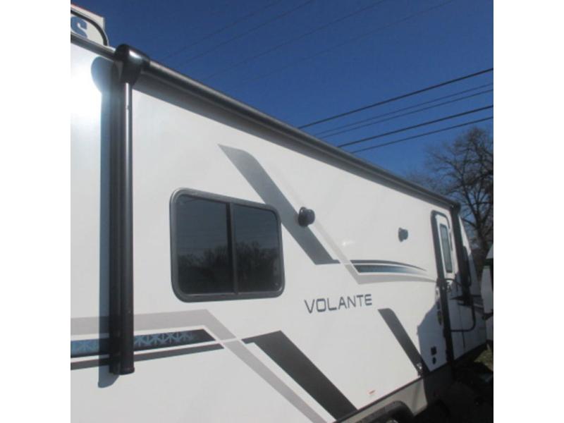 Each Volante fifth wheel or travel trailer by CrossRoads RV includes features and options that will enhance your camping experience. The fiberglass front cap is sure to be eye-catching, and you can plan to camp year around with the fully enclosed and forced air heated underbelly. There is also an outside shower, an electric awning with LED lights, outdoor speakers with LED accents, plus many more exterior conveniences. The interior of each Volante will have you feeling right at home with premium residential furniture, coordinating window treatments in the bedroom, nightstands with outlets in the bedroom, plus USB ports to keep your electronics charged. You will also appreciate a 13,500 BTU A/C, plus solar power prep and WiFi prep if you need to get some work done while you're away from home.