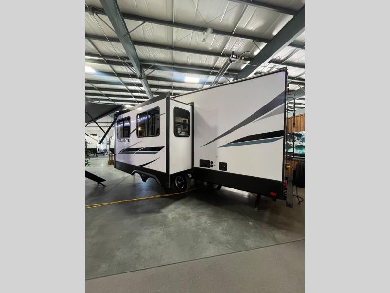 Each Volante fifth wheel or travel trailer by CrossRoads RV includes features and options that will enhance your camping experience. The fiberglass front cap is sure to be eye-catching, and you can plan to camp year around with the fully enclosed and forced air heated underbelly. There is also an outside shower, an electric awning with LED lights, outdoor speakers with LED accents, plus many more exterior conveniences. The interior of each Volante will have you feeling right at home with premium residential furniture, coordinating window treatments in the bedroom, nightstands with outlets in the bedroom, plus USB ports to keep your electronics charged. You will also appreciate a 13,500 BTU A/C, plus solar power prep and WiFi prep if you need to get some work done while you're away from home.