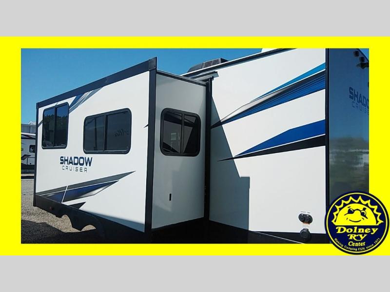 Each one of these Cruiser Shadow Cruiser travel trailers come with convenient features for you to make memories that will last a lifetime! The five sided aluminum framing holds together the Azdel composite laminated sidewalls which will keep your unit from rotting away, plus the surround seal slide system has a rain gutter to aid in keeping water out. Their strong foundation is built with a powder coated structural I-beam frames and three times the amount of required full-height cross members to provide a more solid floor foundation with more attachment points. Travel any time of year with the Extended Season package that includes radiant foil and ducted heating. There is also dual ducted 13,500 BTU A/C to keep you cool and a high BTU ducted furnace to keep you warm. The patent pending full belly pass-through storage area is LED lit so you can see all of your gear and slam latch baggage doors with magnetic latches to keep it in place while you access your items. Come find the perfect model for you today!