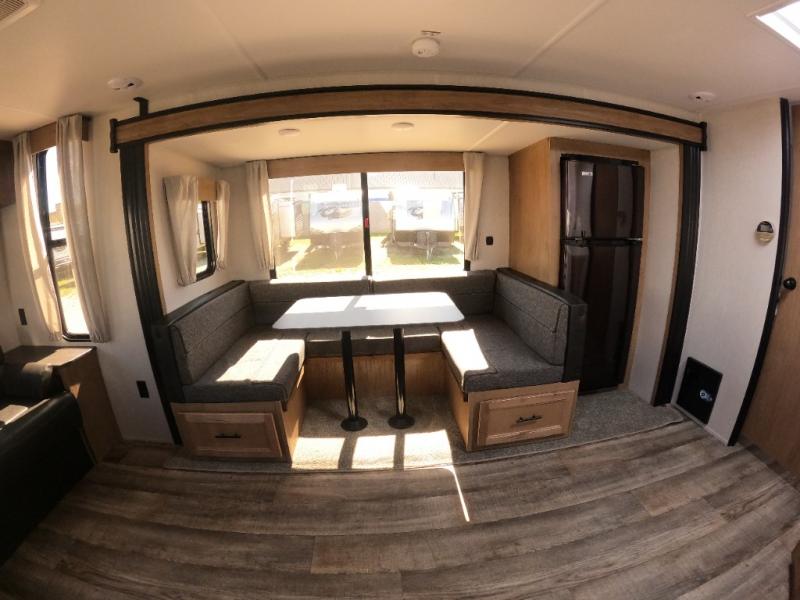 - Rear lounge floorplan creates more live space than Jayco or Coachmen trailers at similar length