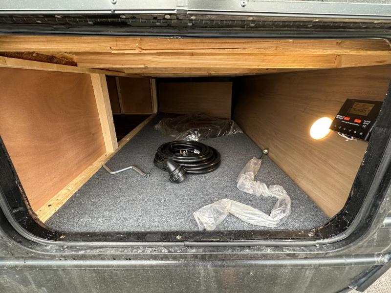 - Comfort & climate: Ducted 15k BTU A/C, power bath vent, tinted safety glass windows, and LED strip lights