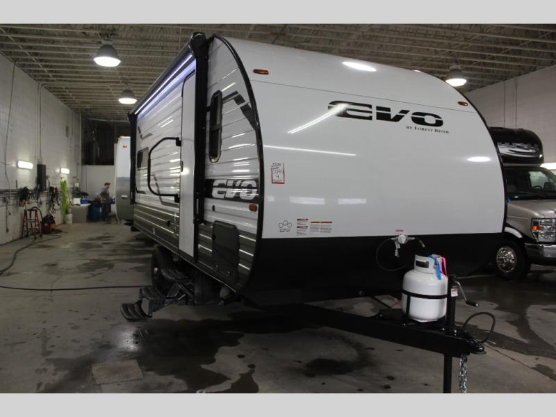 Start taking memorable journeys in one of these Forest River EVO Select travel trailers and toy hauler! The upgraded Tuffcoat aluminum exterior will hold up for years of fun and the diamond-plated rock guard on the front adds extra protection from road debris. With E-Z lube axles, you can be sure to safely arrive to each destination. The upgraded large 32" x 16" baggage doors will keep your gear safely stored away as you travel. There are also two mandatory packages included to make each vacation even better. Come find the right one for you today!