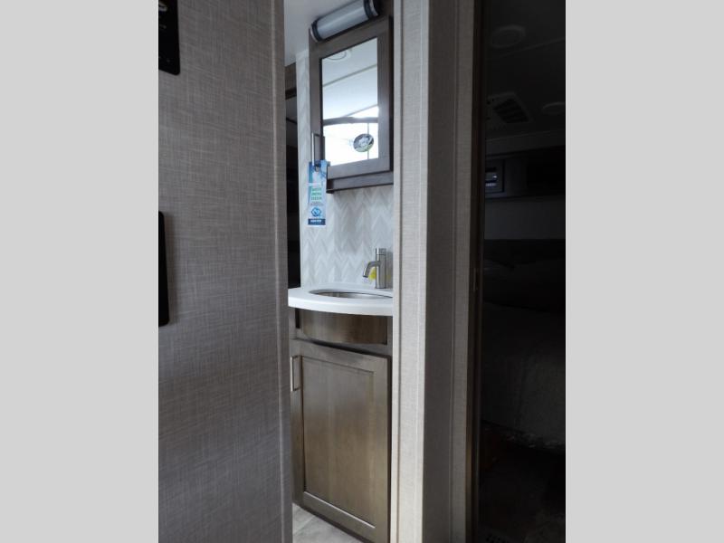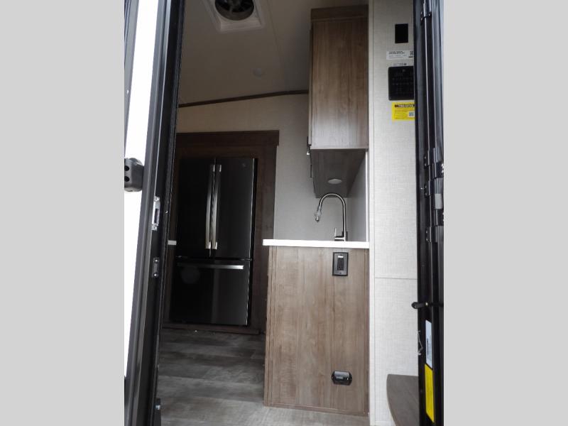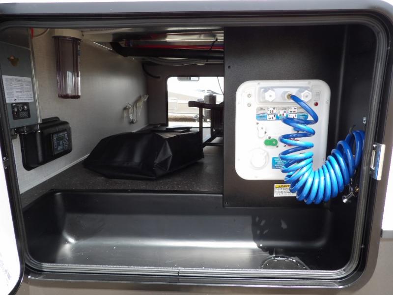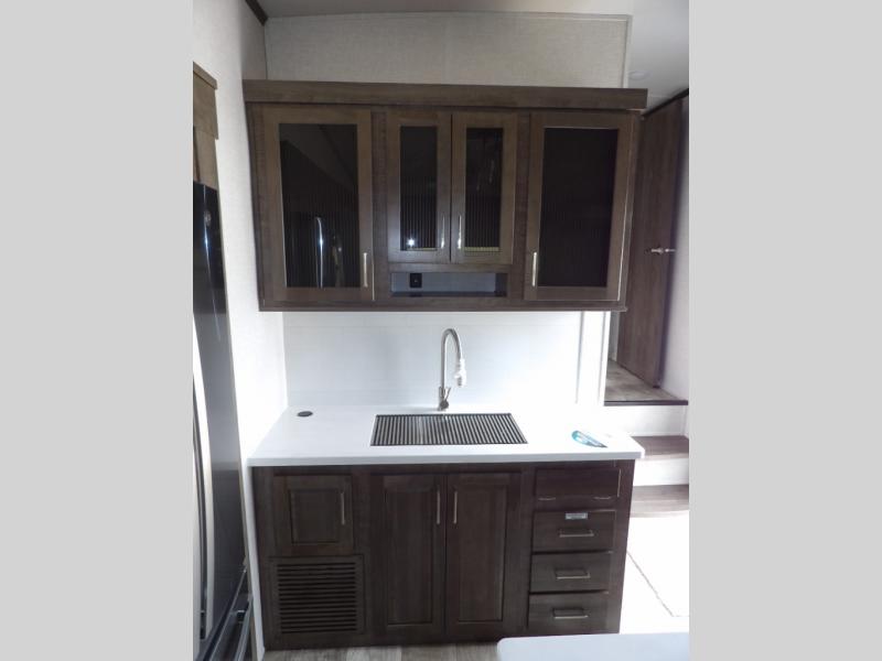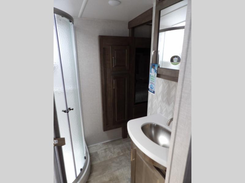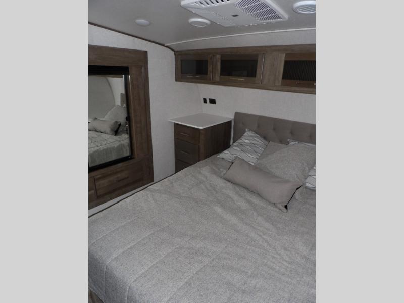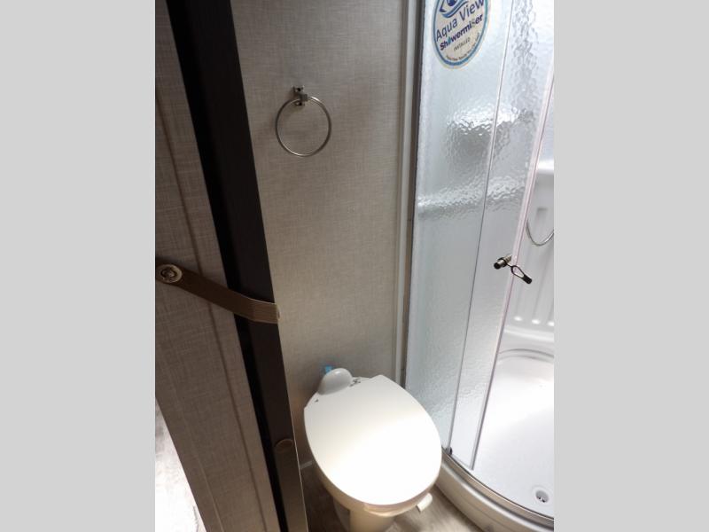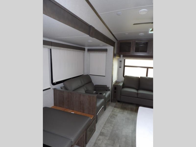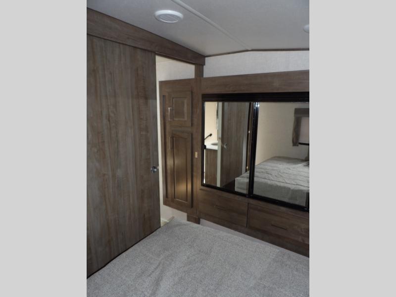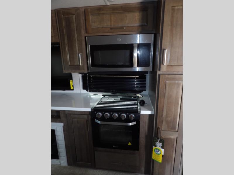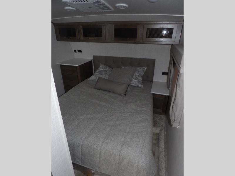 If your goal is to enjoy nature's scenery, the enormous windows in both the rear and door side slide will dazzle you. The living area in this great model will accommodate nine seating comfortably. The large refrigerator and island kitchen you can feed all 9 as well. This model is standard with a queen bed and wardrobe slide. If you want to enjoy the vistas on your camping excursions this is the model for you.