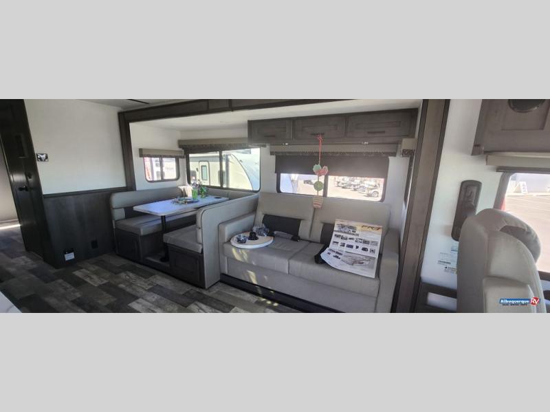 With each FR3 Class A gas motorhome by Forest River, you will find an easy-to-drive coach with a spacious interior allowing you to gather with friends and family with convenience and style found throughout! Each is built with vacuum-bonded construction, a one-piece fiberglass roof with extended rain spouts, a steel firewall and A-pillar extension, Bi-LED headlamps and lower LED fog lights, and grey Rotocast storage boxes with drains. Inside, you will enjoy black hardware, appliances, plumbing fixtures, and a glass shower door frame. You will also find a stainless steel kitchen sink with a bamboo cutting board and roll-up dryer, heavy-duty full-extension ball bearing drawer guides, dual-access dinette storage with doors, and nightstands with charging stations to keep your cellphones ready for whatever is next. Make your selection today!