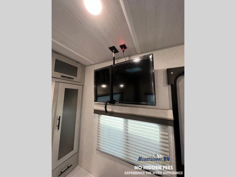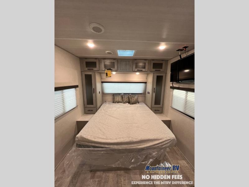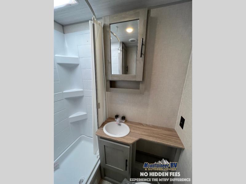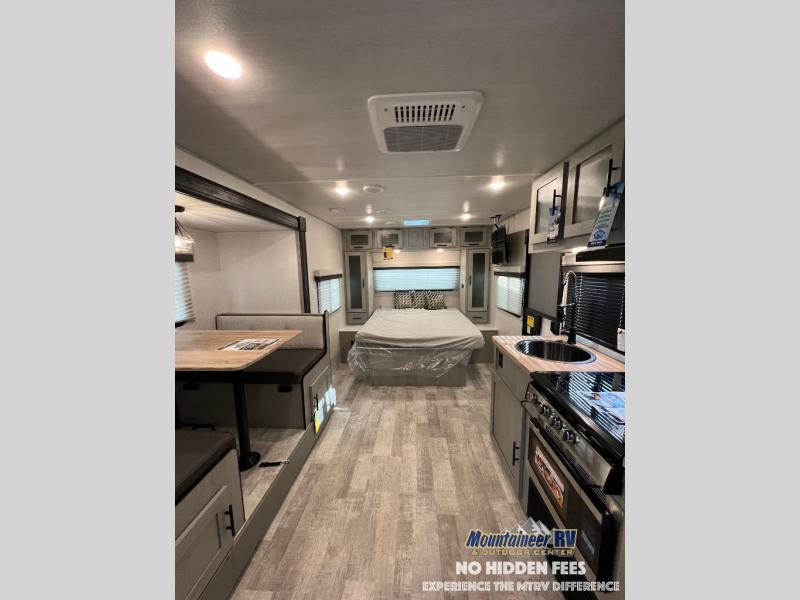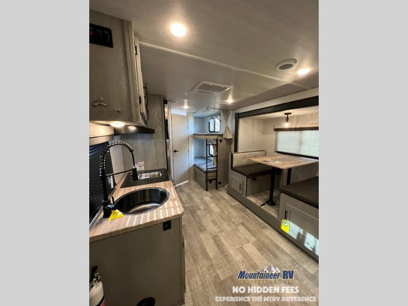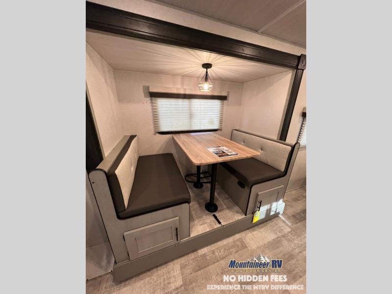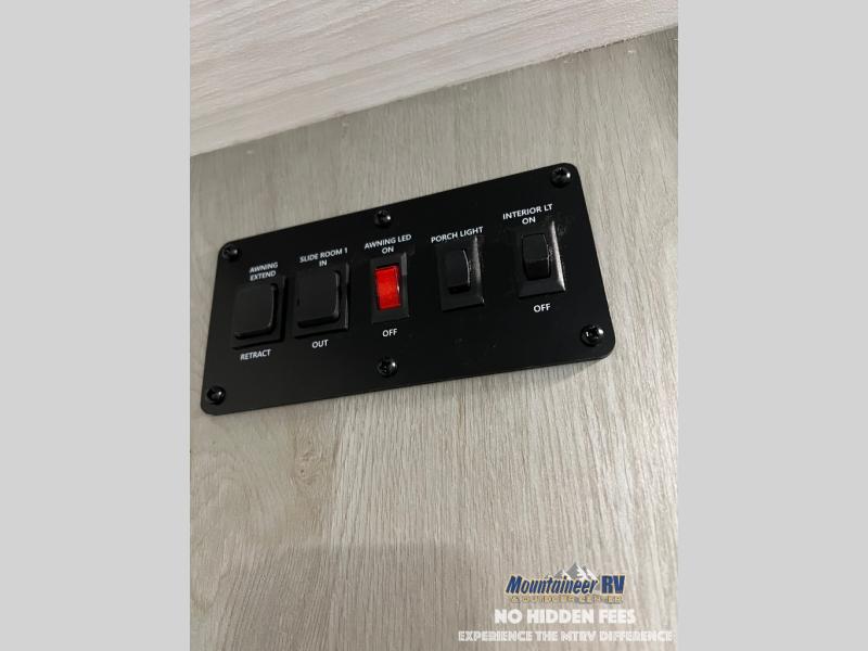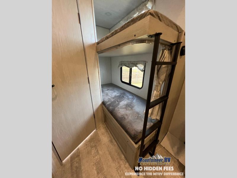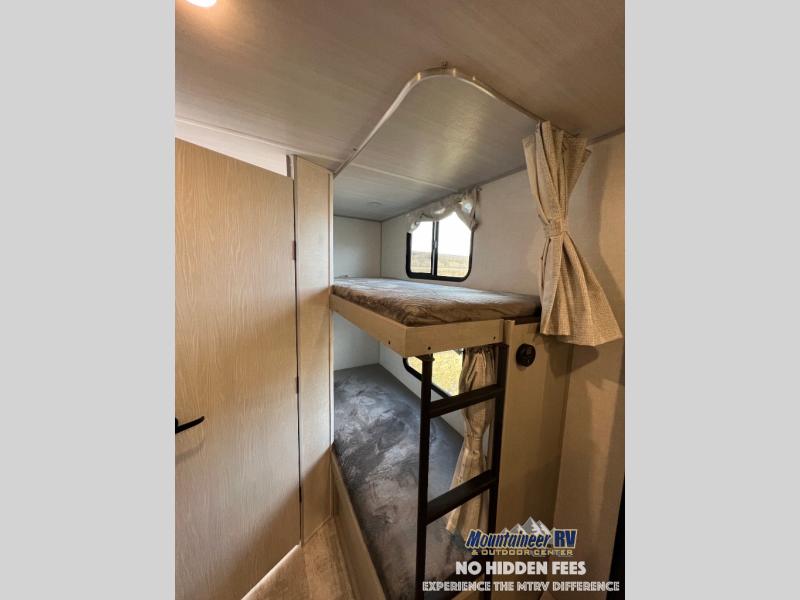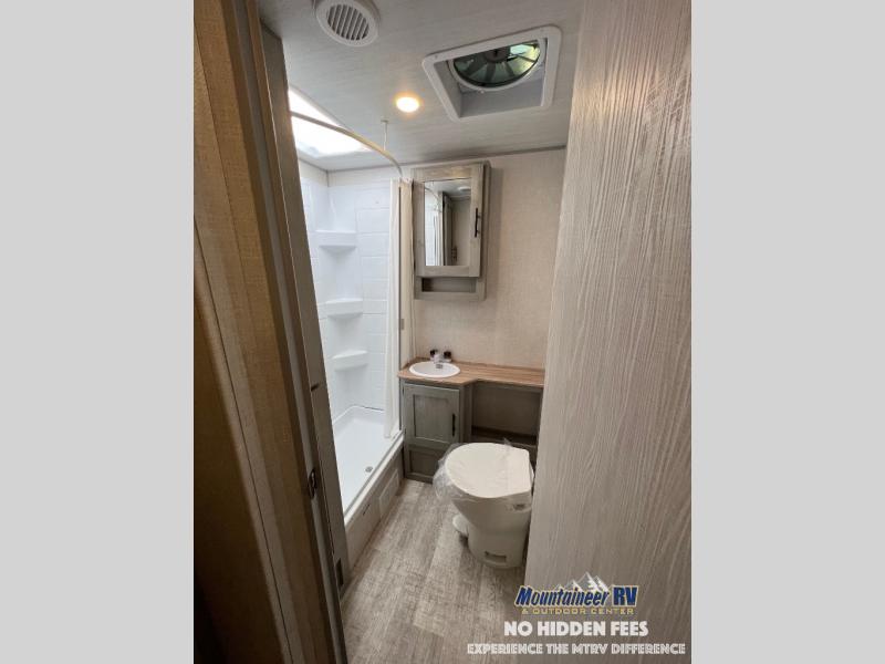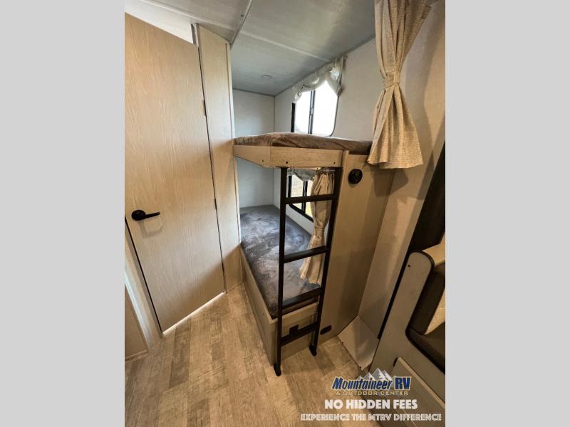 Wanting a full bathroom, sleeping space for overnight guests, plus a slide out for a spacious interior in your next RV? Well stop your search! There is a full bathroom with a shower along the rear corner, bunk beds as well as a dinette that provides extra sleeping space for family and friends, and a slide out offering extra floor space. The cook will appreciate the kitchen appliances and pantry when feeding everyone. The front offers a queen bed with super storage underneath plus side wardrobes to keep your clothes tidy. The exterior provides a pass-through compartment for the larger outdoor gear, and a 16' awning for protection from the sun. And you might like to add the optional Unplugged Package that comes with premium lithium-ion batteries, an easy view control panel, a high efficiency A/C, and more!