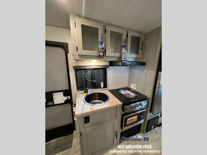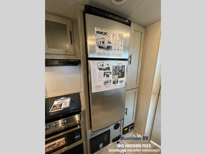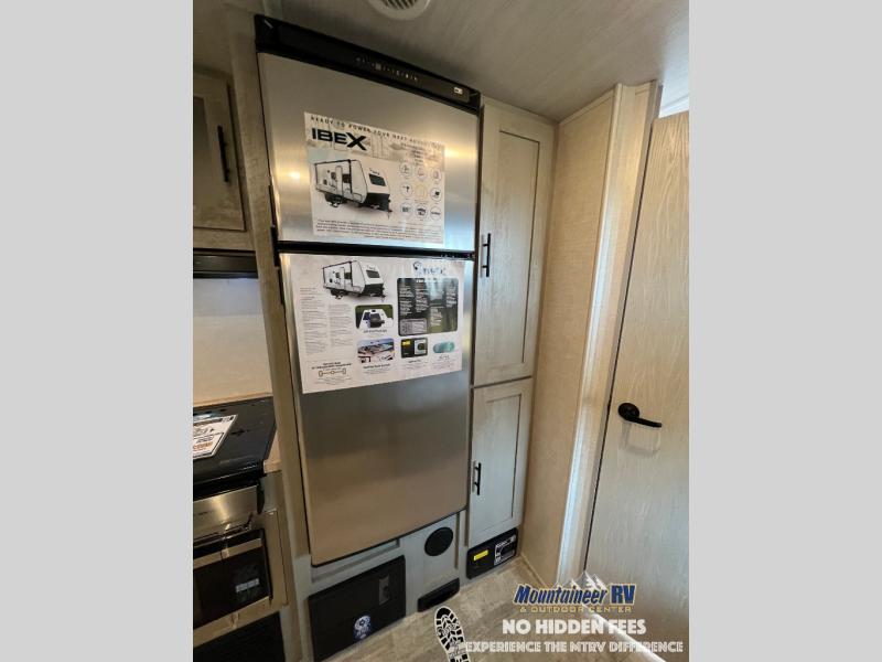 With any IBEX travel trailer or toy hauler by Forest River, the interior offers stainless steel appliances for style, seamless countertops for durability and easy care, and a largest-in-class refrigerator for more cold storage. The Azdel construction and PVC roof will help extend the life of your unit, and the all terrain tires and increased ground clearance means you can go more places. A JBL wireless Bluetooth audio system also comes standard so you can listen to your favorite tunes, along with Rhino-Rack RTV tracks to keep your gear secure!