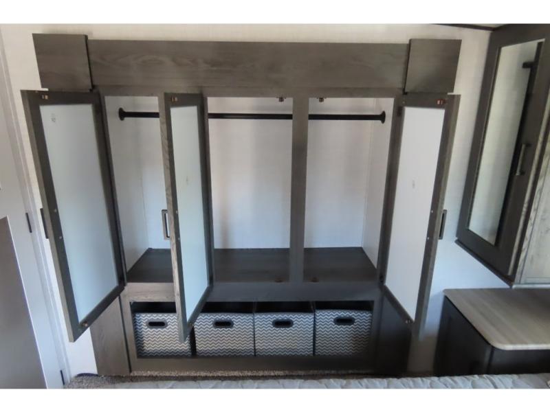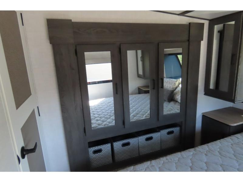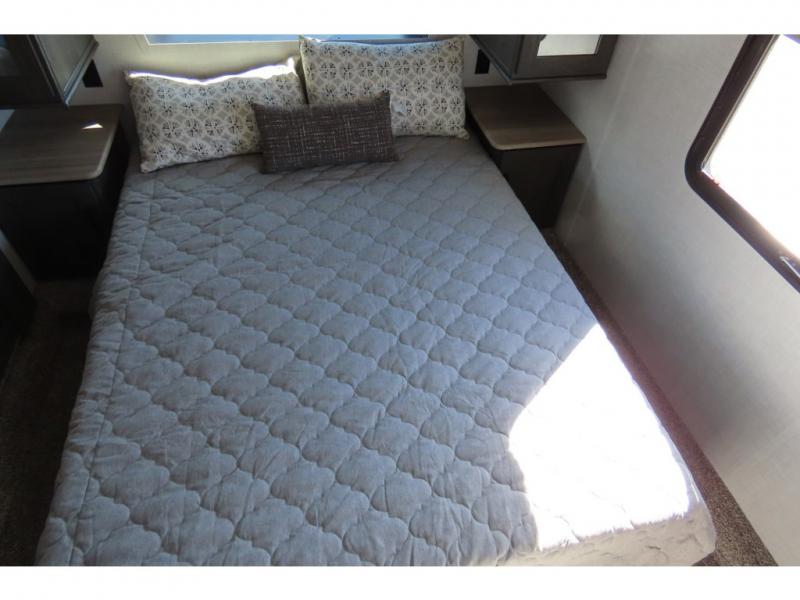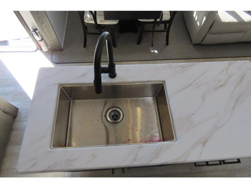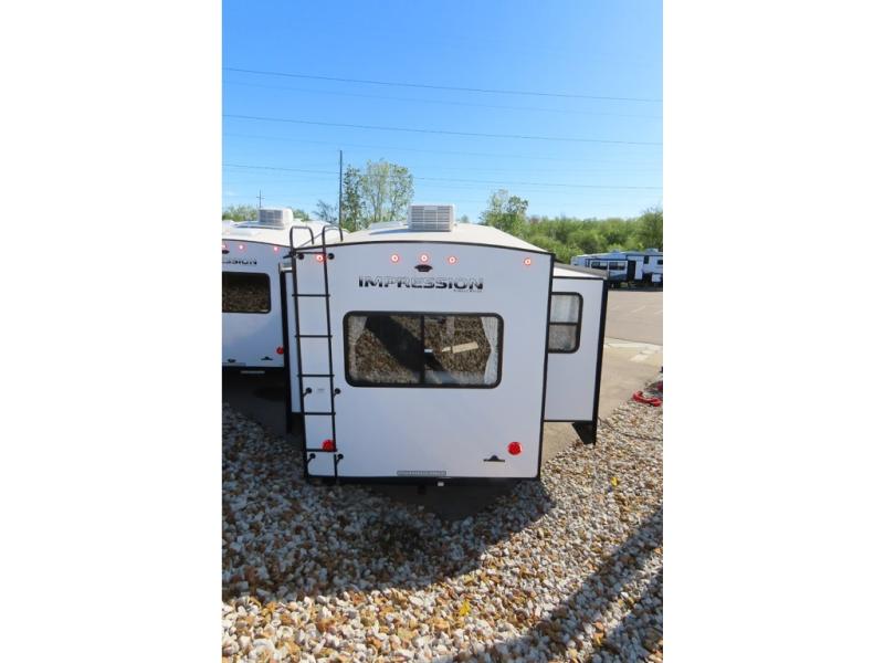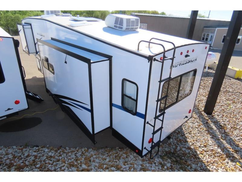 With any Impression mid-profile fifth wheel by Forest River, the focus of the design is comfort and value, built with quality craftsmanship and attention to customer's desires in each Impression! The exterior includes upgraded E-rated Goodyear Endurance tires made in the U.S.A., custom exterior graphics package, and One Touch automatic leveling system for easy setup. There is also an enclosed docking station and a gel coat fiberglass front cap with an automotive windshield with LED lights for style and beautiful views. The fully heated and enclosed AccessiBelly has removable underbelly panels and offers four seasons of travel. The interior has oversized opening windows in the living area for more natural lighting and good air flow, a stainless steel single bowl sink with high rise faucet with a pulldown sprayer to easily clean the dishes, and a porcelain foot flush toilet to mention a few comforts and conveniences.