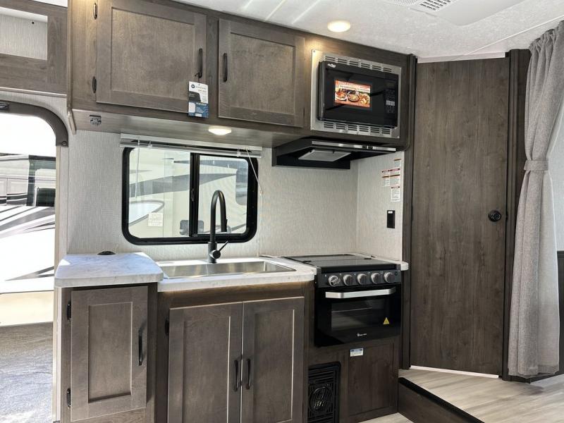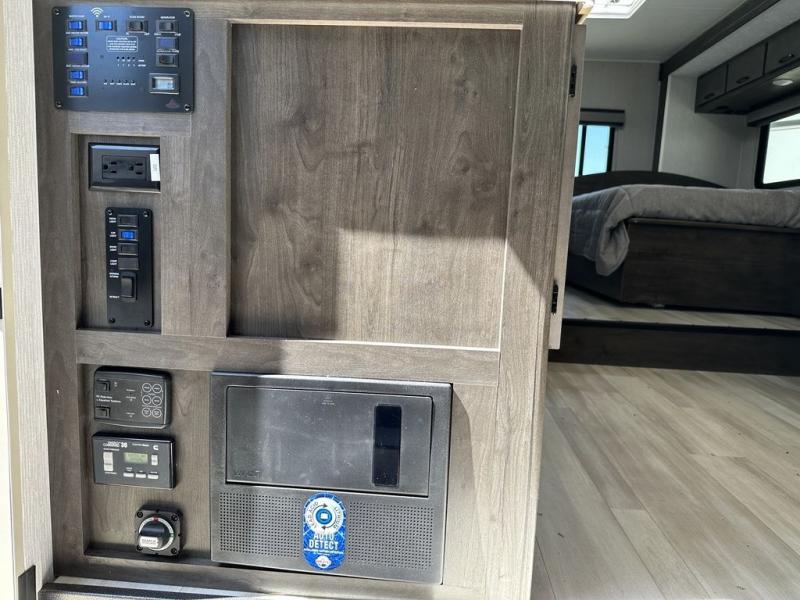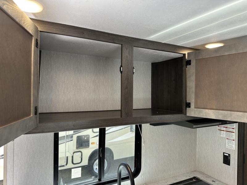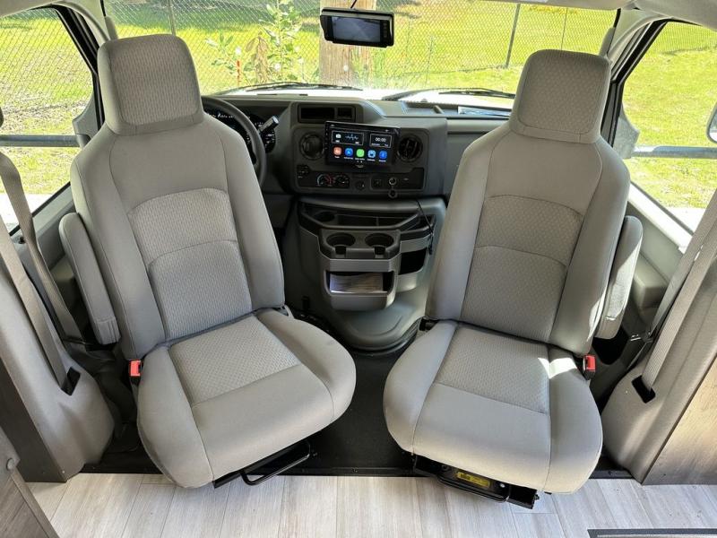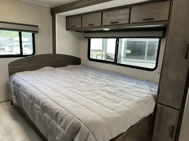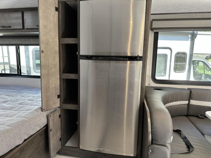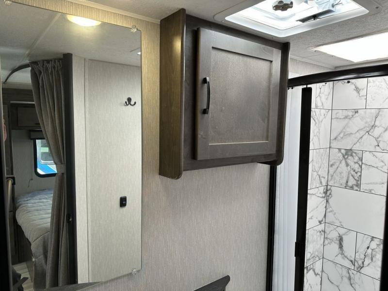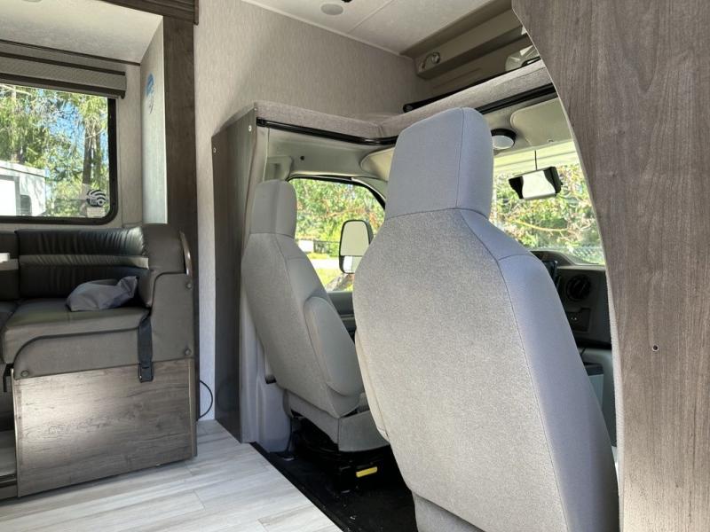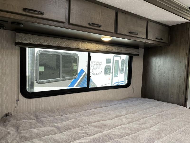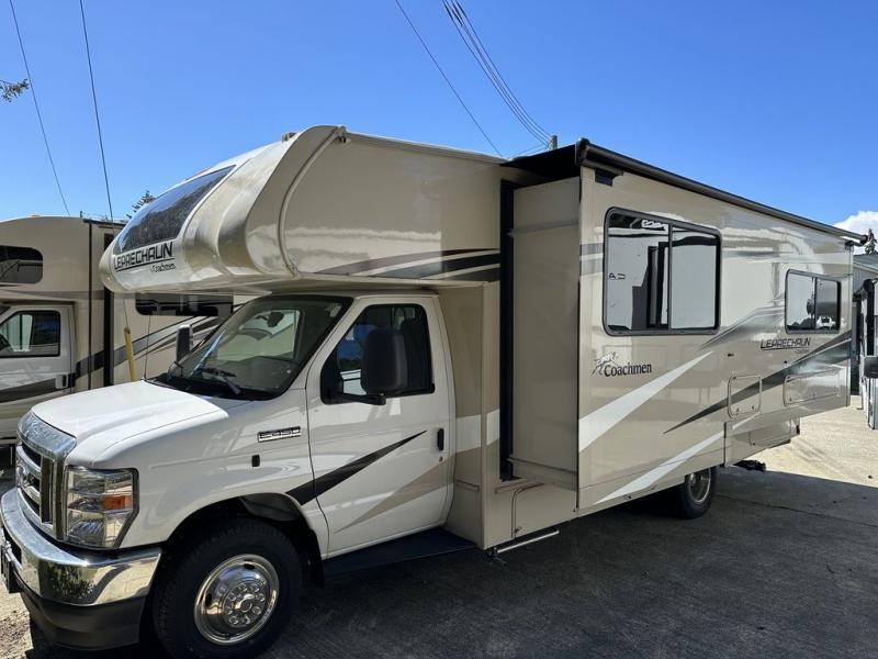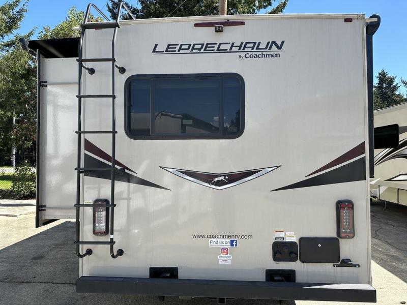 With each Leprechaun Class C gas motorhome by Coachmen you will enjoy "better" interior appointments, like the premium hardwood cabinet doors and drawer fronts, the one-piece thermofoil countertops, and the premium vinyl flooring. You will sleep soundly each night on the upgraded mattress, and staying clean will be easy with the premium showerhead and faucet in the bath. These models include reclining cockpit seats, cruise control, and a rear backup camera so you can easily get in and out of the campground. The Leprechaun is constructed with Azdel composite sidewalls, CrossFlex PVC, polyester reinforced roof material, and vacu-bond laminated walls, roof, and floor for a durable motorhome made to last.