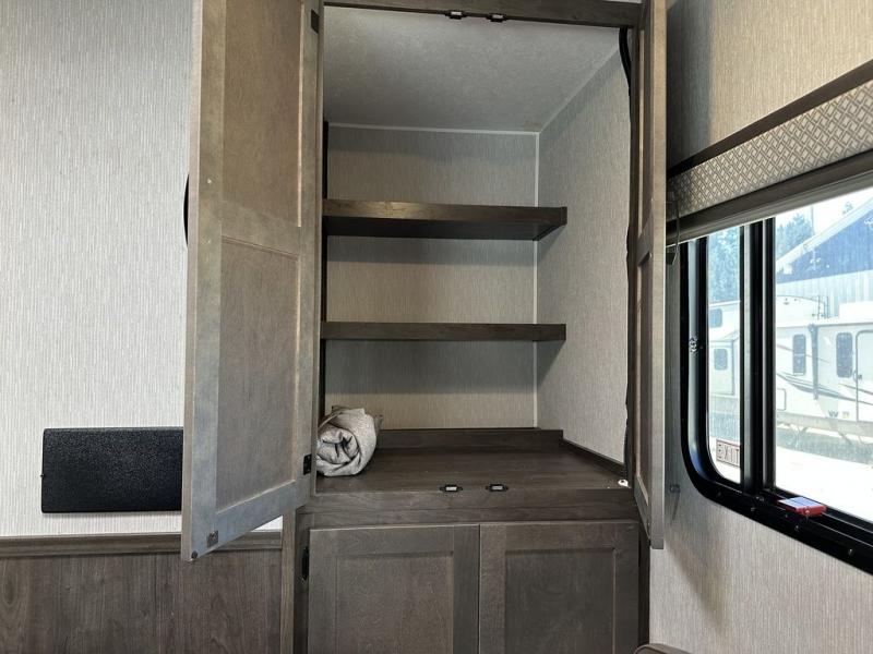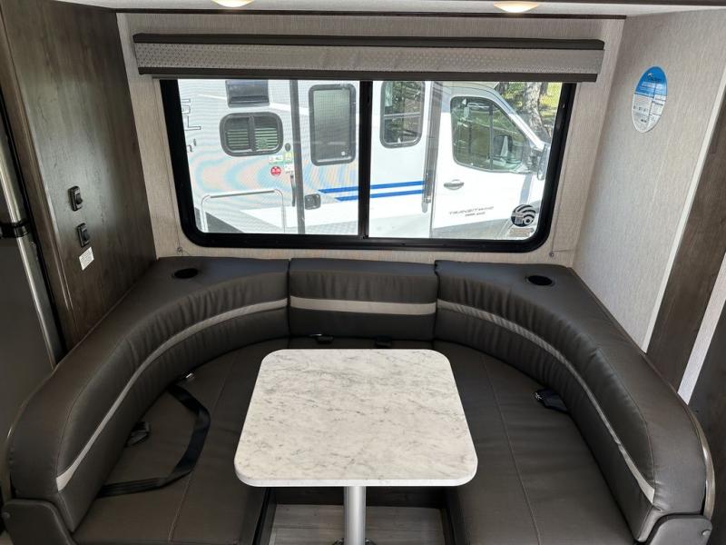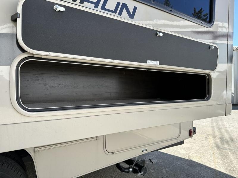 Sit back, relax, and enjoy your time touring with this Leprechaun Class C gas motorhome! The full-wall slide will be beneficial because it will provide you with more interior living space, and the shower skylight will also provide you with more head space while you are getting clean. You will be able to keep your family full with loads of delicious meals that have been prepared on the three-burner range in the full kitchen, and you can also use the residential-size microwave oven to heat up quick meals if you are headed out on another adventure. The queen bed features under-bed storage for your luggage, extra blankets, or board games, and there is a closet to hang your clothes!