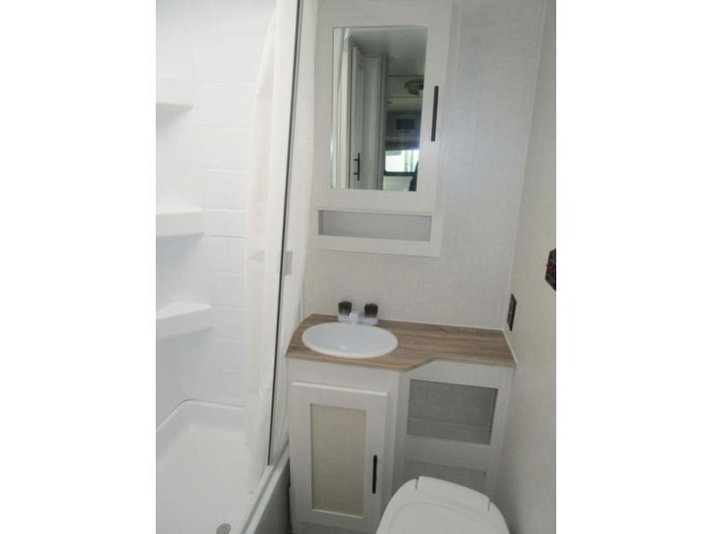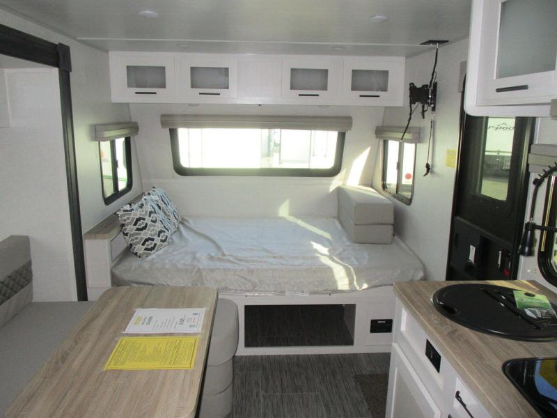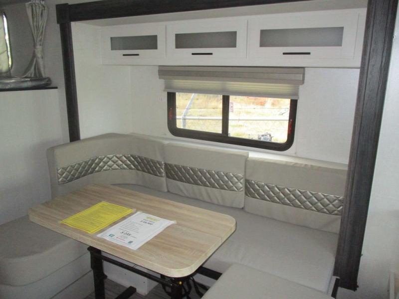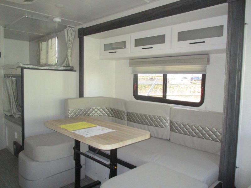 This No Boundaries travel trailer will make your life easier with its bunk beds, chaise dinette, and queen-size bed. Now you can bring along your favorite people without worrying where they will sleep at night. The single slide gives you more space for staying inside and spending time together, and there is an entertainment center that you can use while you're in there. This trailer also has great storage with the bathroom closet, kitchen refrigerator, overhead cabinets, and exterior pass-through storage. You'll also have a 14' power awning that will protect you while you're outside enjoying the weather. Add the optional Un-Plugged package to take your camping experience to a whole new level. Some features included in this package are 600 watts of solar, premium Lithium-ion batteries, a 3,000 watt inverter charger, a high-efficiency A/C, and more.