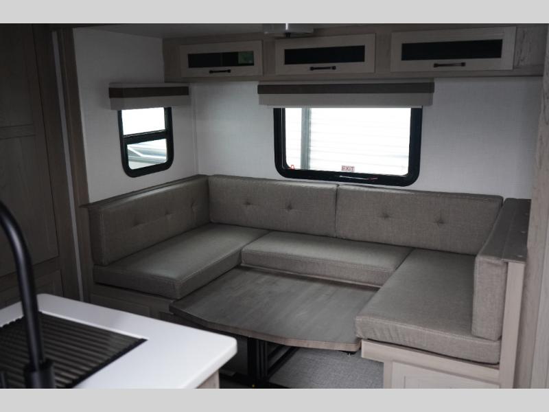 Each Rockwood Mini Lite travel trailer by Forest River is constructed with a fully laminated one-piece walkable roof, sleek frameless windows, and a six-sided full aluminum frame for strength and durability. The 12V thermostatically controlled heated tanks, plus radiant foil in the underbelly, front caps, and slide out floors will allow you to camp well into the colder months, and the 200W roof solar panel will be perfect for a little off-gridding. Each model includes solid surface kitchen countertops, solid wood cabinet doors, night roller shades, plus many more interior features. Having a Teton all in one Wi-Fi booster/LTE prep and antenna on board will allow you to get some work done if it's needed, and the power tongue jack provides hassle-free set up, so you can enjoy more time relaxing!