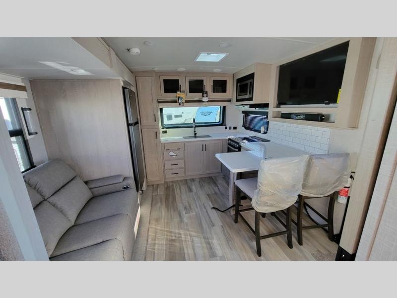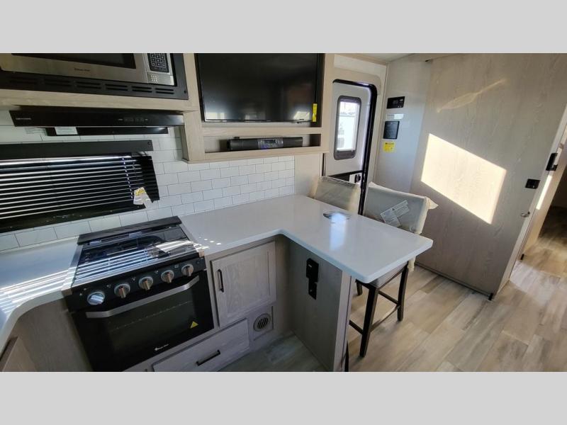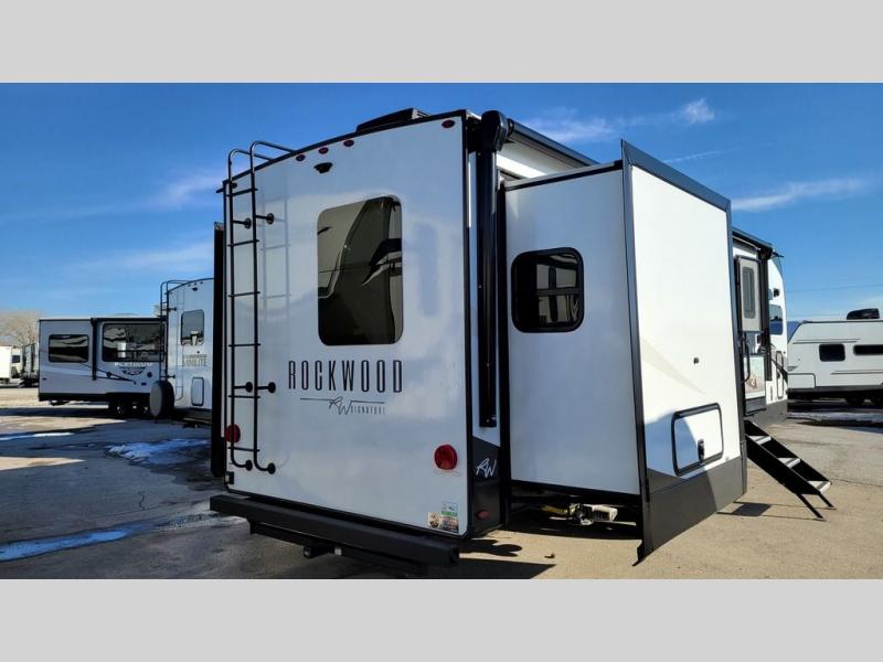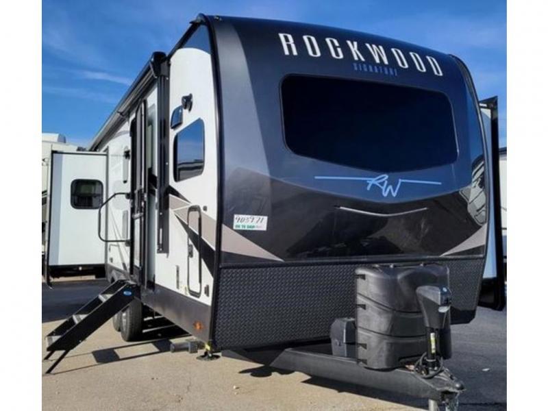 With any Rockwood Signature fifth wheel or travel trailer by Forest River RV, the superior construction includes white or champagne fiberglass sidewalls, a one piece seamless roof membrane, 6-sided aluminum framed walls, floors and roof, plus radiant foil insulation and an enclosed underbelly for use in all types of weather. Some safety standards include Dexter torsion axles, MORryde strut assist steps, and the TST tire pressure monitor system. The interior offers a One Touch OneControl panel with WeRV app control, for lights, awning, slides, water heater and more. You will also appreciate the interior vaulted ceilings, residential soft close doors and drawers, plus solid surface kitchen countertops, a designer kitchen backsplash, plus many more features depending on which Rockwood Signature unit you choose!