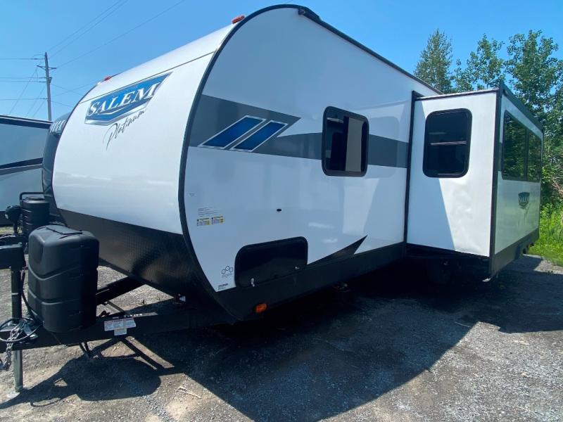 Enjoy years and years of memories with any one of these Forest River Salem travel trailers! They are built with a one piece, SuperFlex roof, a powder coated I-beam frame, and an aerodynamic front radius profile for an easier tow. The triple seal slide out system prevents water from seeping inside and keeps it outside where it belongs. The Best In Class Value Package includes upgraded designer furniture, seamless countertops with no T-mold, and two zone residential soundbars with FM, Bluetooth, HDMI and USB. You will also appreciate the heated and enclosed Accessi-Belly with removable underbelly panels, the power tongue jack with an LED light, the designated CPAP storage. Some new upgraded features include: kitchen backsplash, fireplaces with mirror fronts, bedroom bedding, 12V refrigerator, now with glass doors, and so much more!