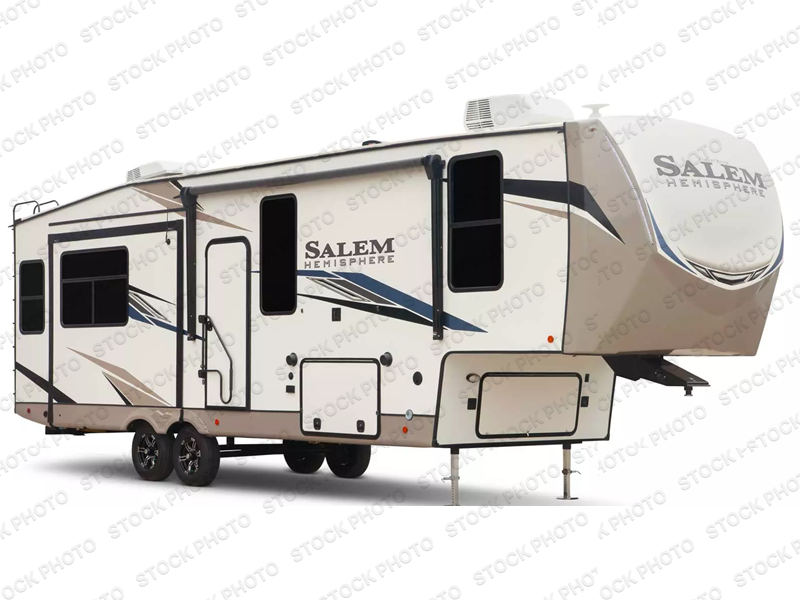 With each Forest River Salem Hemisphere fifth wheel and travel trailer, there are vacuum bonded "Aluma frame" sidewalls and floors, a heated and enclosed underbelly, and an extra large pass-through storage so you can bring along hiking gear, fishing poles, and more! Each model includes an Ivory Performance colored exterior fiberglass, a central switch center, a spare tire and carrier, and many more convenient features within the included Upgraded Options Package. There is also European Oak colored horizontal plank linoleum flooring, a Designer's Choice comforter, and saddle colored wood cabinetry to name a few at-home comforts. Power stabilizers comes standard with the VIP Package, along with 12V heat pads on all holding tanks, extra large Max-Tint panoramic window package, and the list goes on!