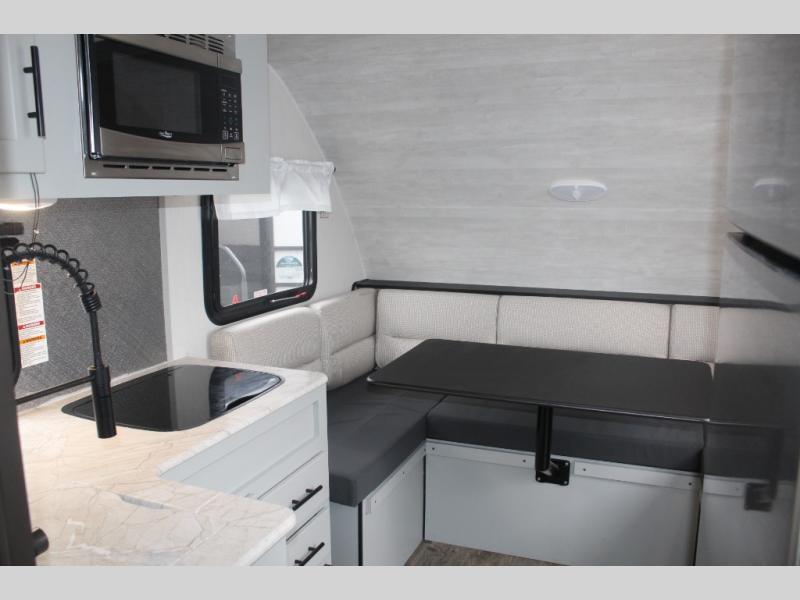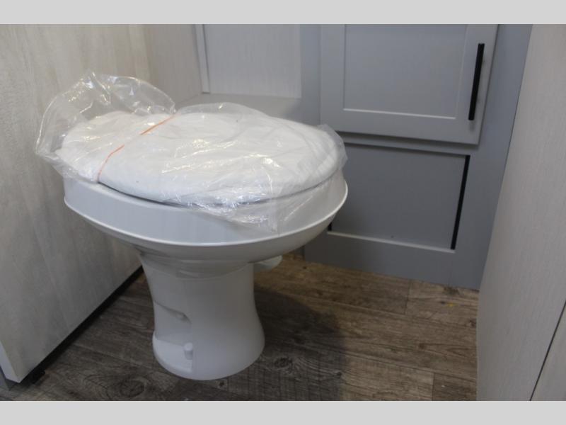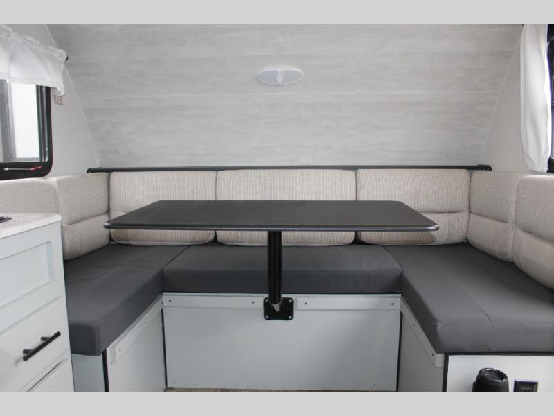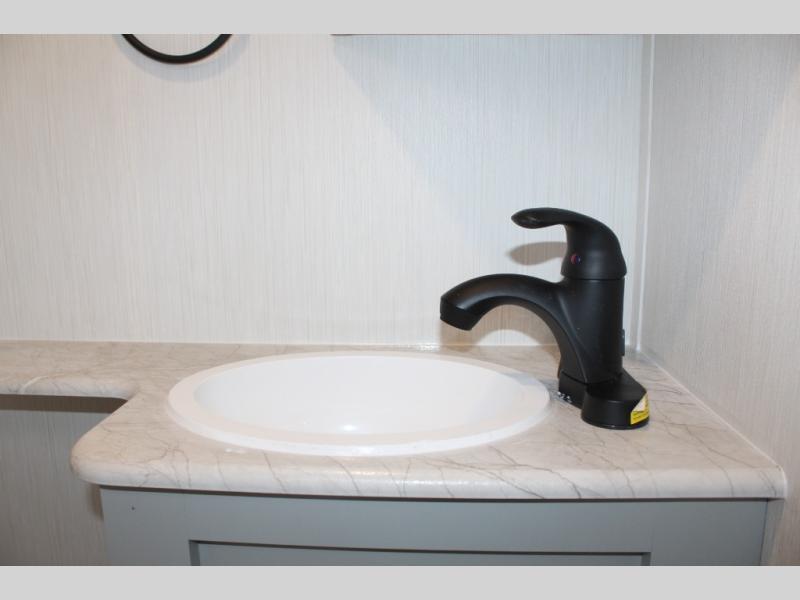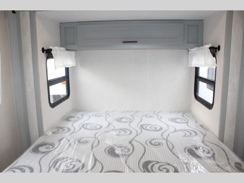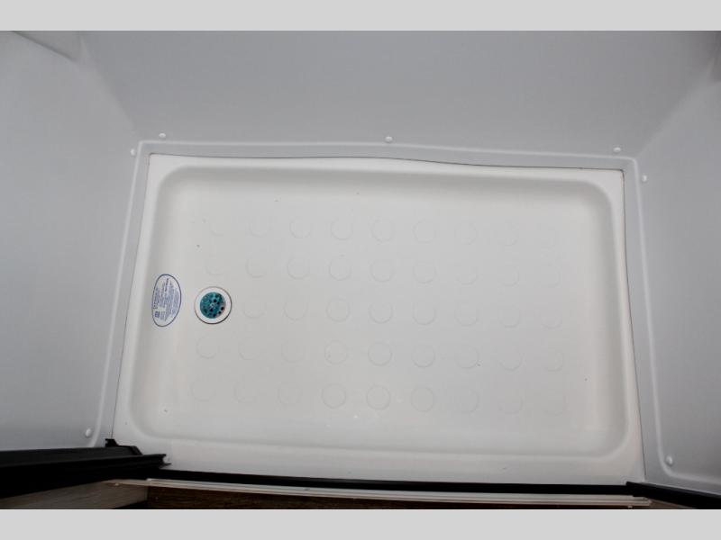 You and your spouse will love camping in this travel trailer! The rear private bedroom has a queen bed slide for more walking around space and a dresser with wardrobes on either side of it, plus a TV location above it. As you exit the bedroom, you will notice the separated bathroom which has a private shower for one person to clean up in the morning while the other uses the toilet and sink. Prepare a hearty breakfast in the kitchen with the two burner cooktop and enjoy it at the front U-shaped dinette all with a skylight above for added natural lighting. You could even prepare food outside with the exterior pull-out LP griddle. The exterior large storage area is big enough to store all of your essential camping gear!