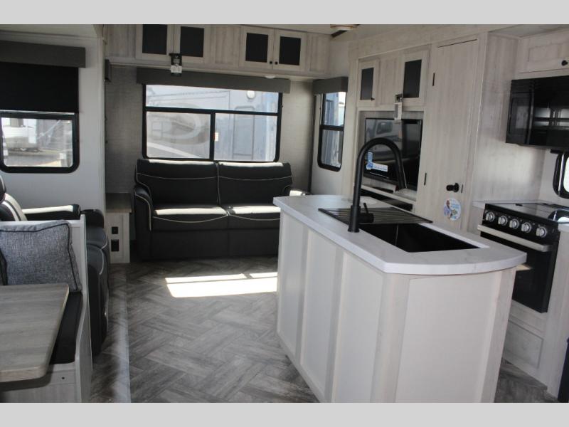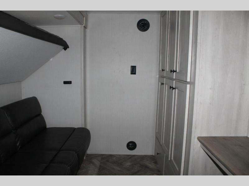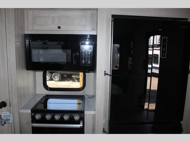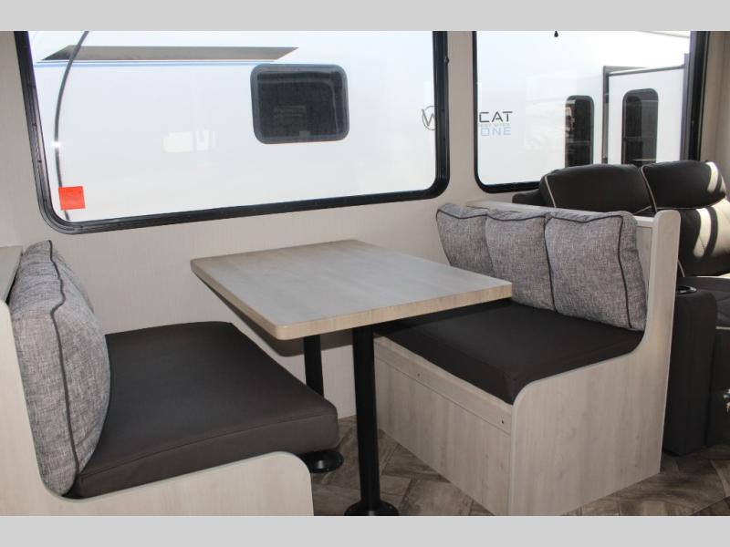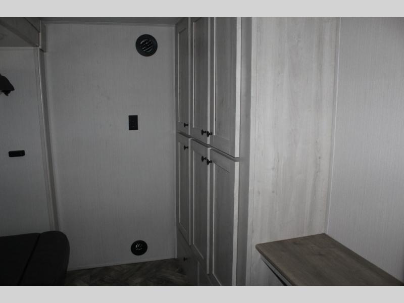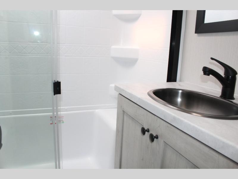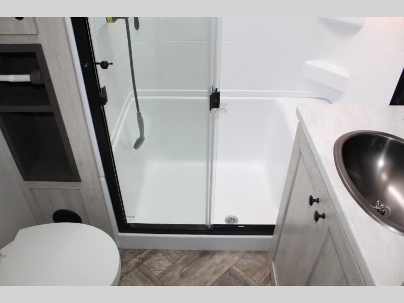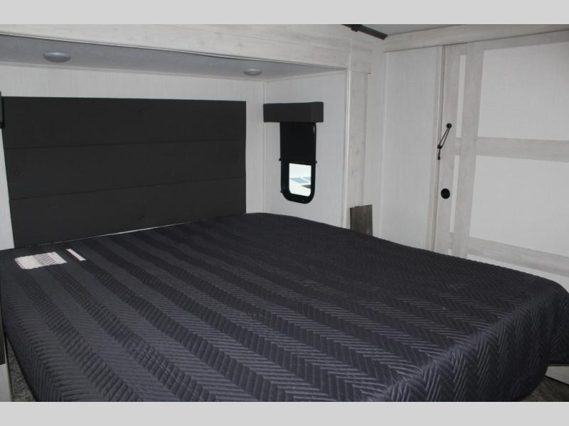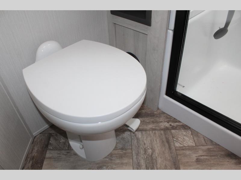 With any Wildcat fifth wheel or travel trailer by Forest River you will appreciate durable construction, including a Maxx strong laminated aluminum floor on the travel trailers, and underbelly armor on the fifth wheels. The Maxx insulation package includes high-density block foam insulation, two 30 lb. LP tanks, and a 35,000 BTU furnace to keep you comfortable year around. Some of the interior comforts you are sure to appreciate are the bedroom reading lights on both sides of the bed, the foot pedal flush toilet in the bath, the Rose Gold door and drawer hardware, and more!