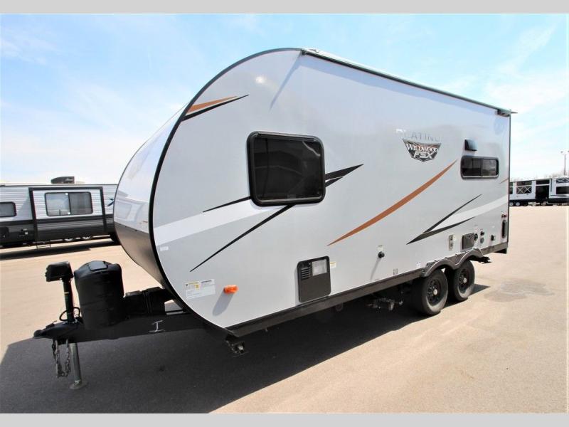 The Forest River Wildwood FSX travel trailer and toy haulers are easy to tow and easy to love, so come take a look! With each model you'll appreciate the 20K BTU furnace and 13,500 BTU A/C to keep you comfortable year around, and the large windows will make the whole unit seem bright and open. The EZ entrance includes an XL folding grab assist handle, and the power awning with LED lights provide an outdoor living space you are sure to love. The lightweight Wildwood FSX travel trailers and toy haulers are your ticket to the great outdoors. Choose yours today!