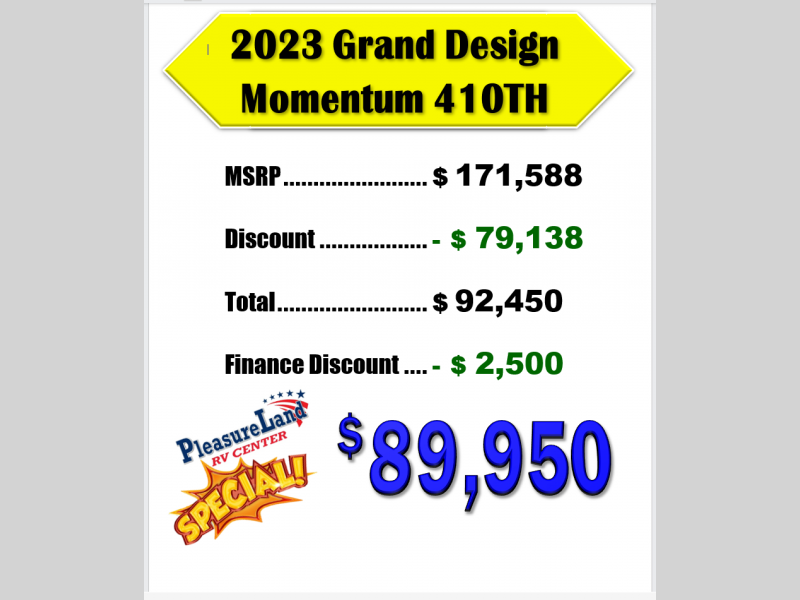 New 2023 Grand Design Momentum 410TH Toy Hauler Fifth Wheel