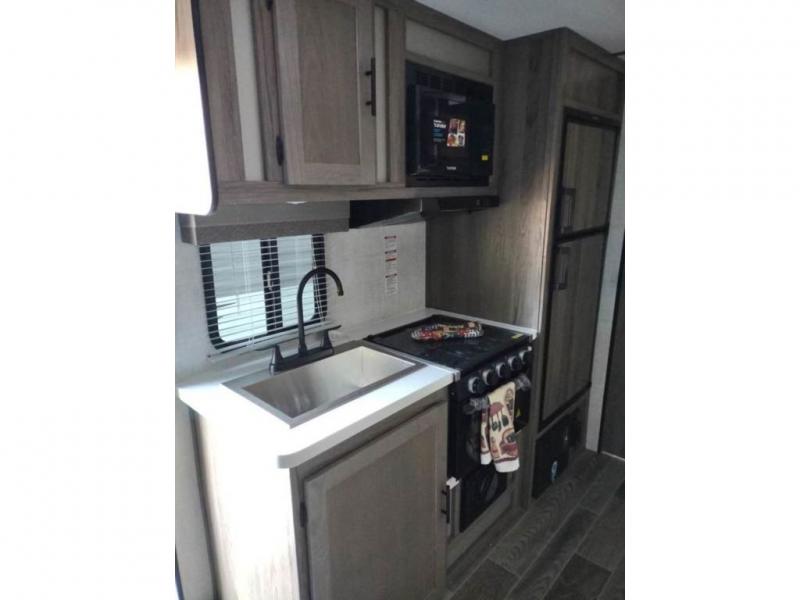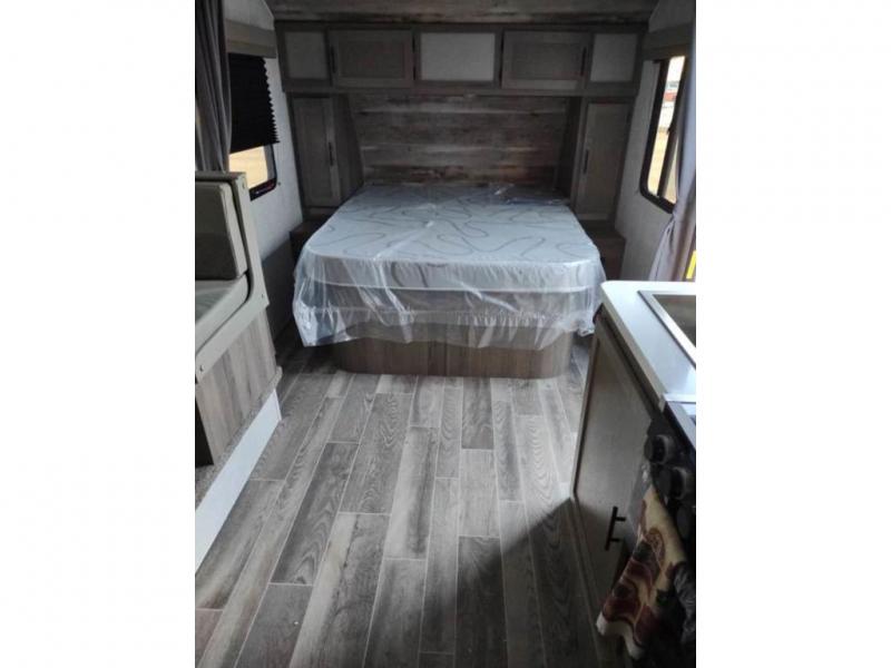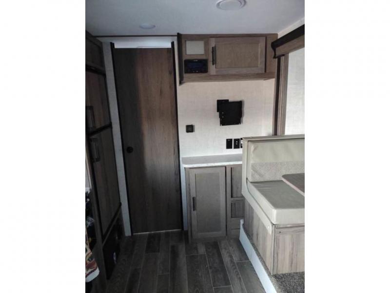 When you enjoy camping at state parks or local RV resorts, this 22' 6" trailer can easy be towed and setup quickly so you can enjoy your long-weekend. The front offers a walk-around queen bed with a shirt closet on each side, plus a privacy curtain, and the booth dinette slide offers additional sleeping space plus a place to dine and relax inside when you aren't outside under the electric awning. Everyone can get cleaned up in the rear full bathroom complete with a wardrobe, and the cook will appreciate the galley kitchen with dry and cold storage plus a cooktop to make hot meals. And the exterior pass-through storage gives you a place to stow away your camping chairs and larger items like fishing poles.