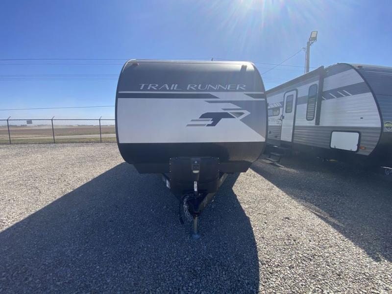 Paradise awaits at the end of the trail with one of these Heartland Trail Runner travel trailers! Experience better wind and water deflection, added strength, and a reduction of tongue weight with the hybrid aluminum front profile that has an aerodynamic radius front cage. A cambered structural steel I-beam frame holds them together and a heated enclosed underbelly protects the units vitals. There is an industry leading mammoth storage space of 57 cu. ft. pass-through storage so you can bring all of your outdoor gear with you. Roller shades in the main living area, woven flooring in all slide rooms, master suites with CPAP storage, and upgraded pressed counters give you the at-home feel you desire. Come find the perfect model for you today!