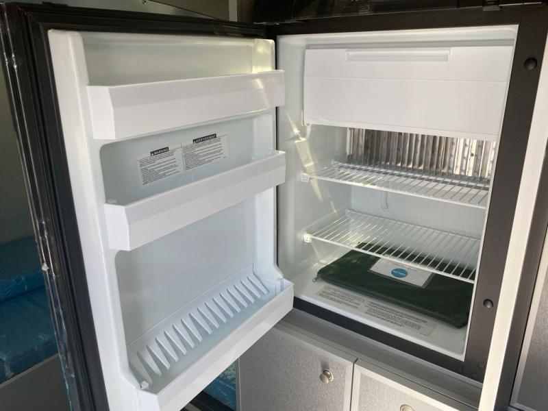 Start planning your next weekend getaway to the lake in this O Series trailer that will comfortably sleep three people. You will be able to make breakfast every morning with a kitchenette that includes two burners and a sink, ventilation, and a fan with automatic temperature control. You'll find clever storage for your clothes, board games, and necessities and there is even a refrigerator with freezer for all your food. After a day exploring the woods, you will surely appreciate the dinette that folds down to a queen-sized bed that will provide a great night's rest!