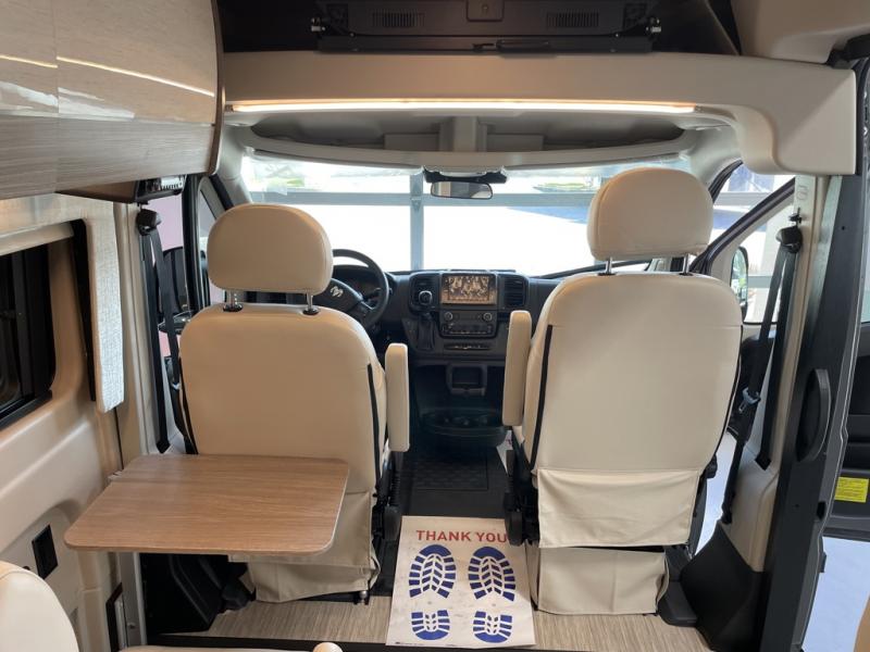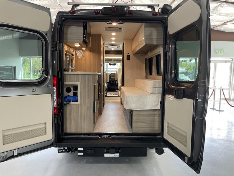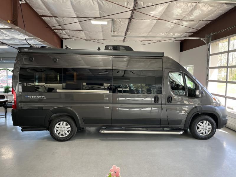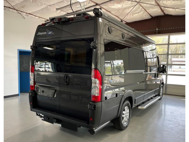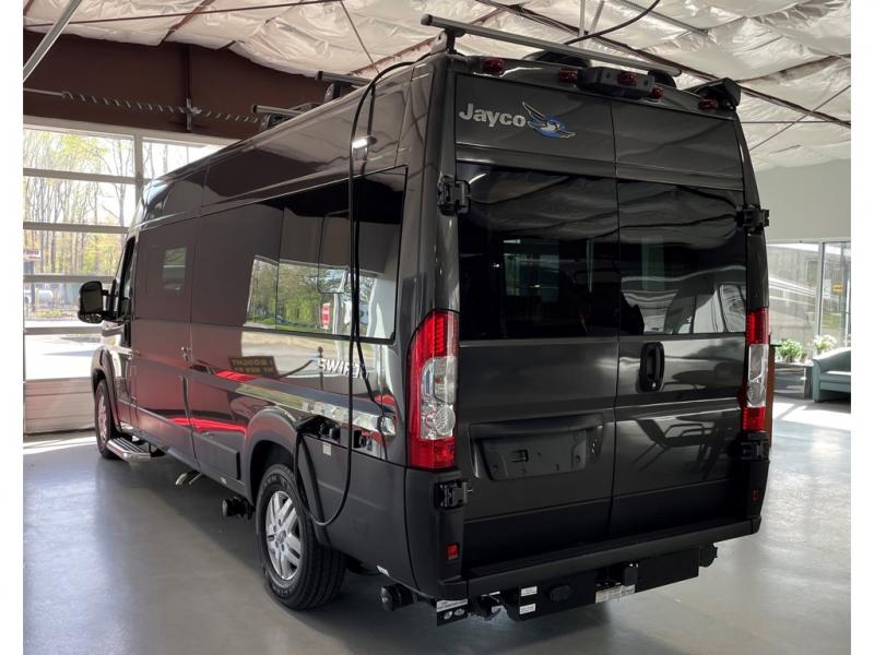 Each Swift Li Class B gas motorhome by Jayco sits upon a RAM ProMaster 3500 window van chassis for strength, and includes custom-molded, vinyl-wrapped ABS interior wall panels for durability. The roof-mounted 200 watt solar panels will allow you to go off the beaten path, and you'll appreciate the 48V - 210 amp hour smart Lithium battery for 10kW hours of power. Luxury features inside include residential vinyl flooring, a soft-touch vinyl ceiling, Tecnoform European-style cabinetry, and a solid surface kitchen countertop. The JayCommand powered by Firefly will let you control your coach's functions from your phone or tablet, and you can stay connected to the outside world with Winegard Connect 2.0 4G/Wi-Fi/digital TV antenna.