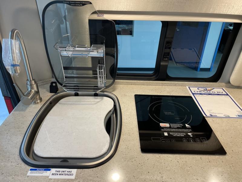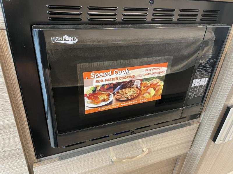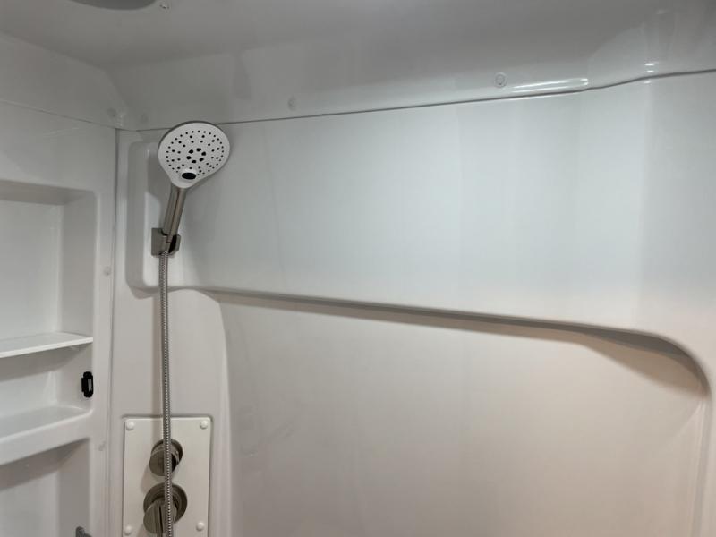 This coach is perfect for day trips with friends or overnight stays with your significant other. There are two additional cab seats up front and a 32" overhead TV to watch movies if it's raining outdoors. Lunch can be made on the induction cooktop, or in the convection microwave, and you can freshen up in the wet bath before heading out for the day. Your evenings can be spent outdoors under the 13' awning, or you can relax on the extended bed for a movie on the 24" TV!