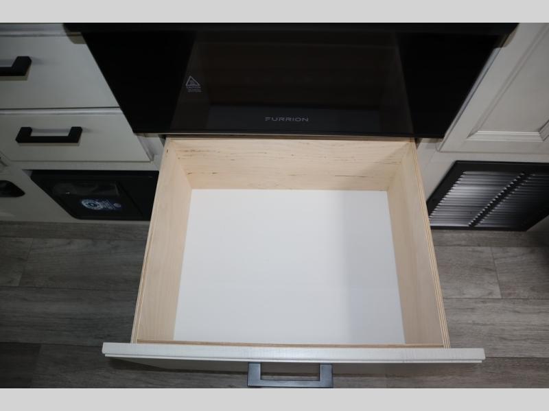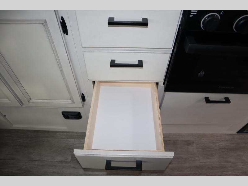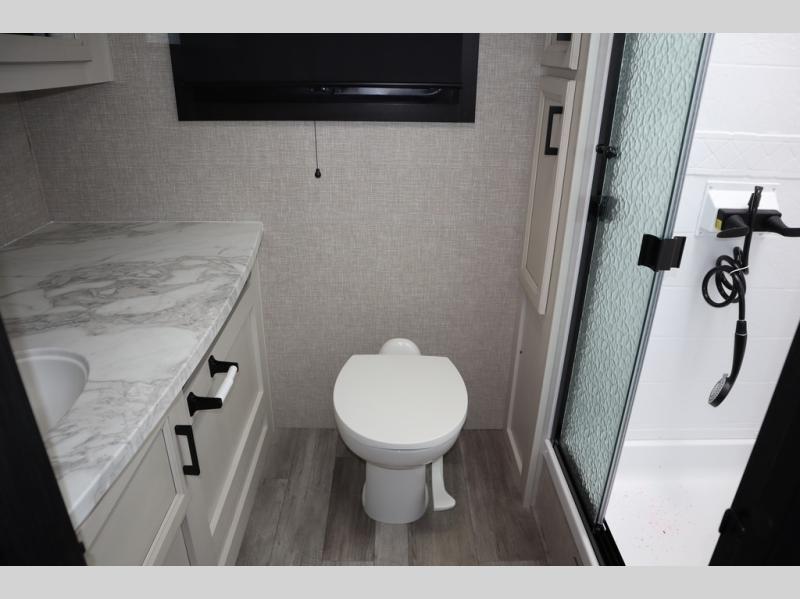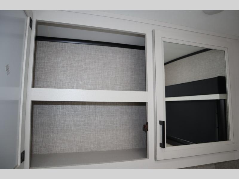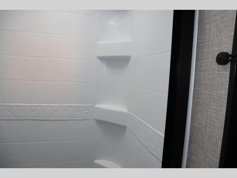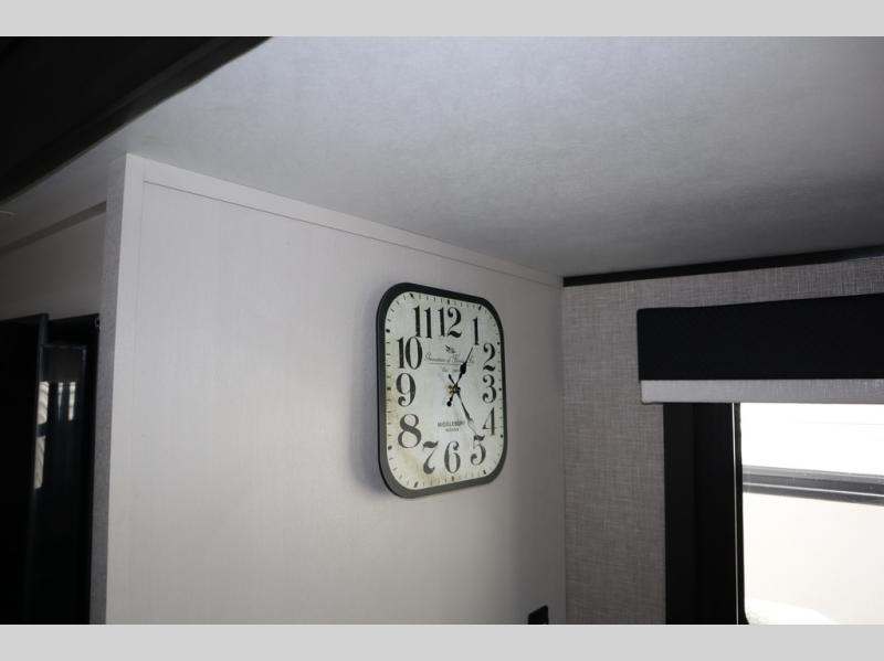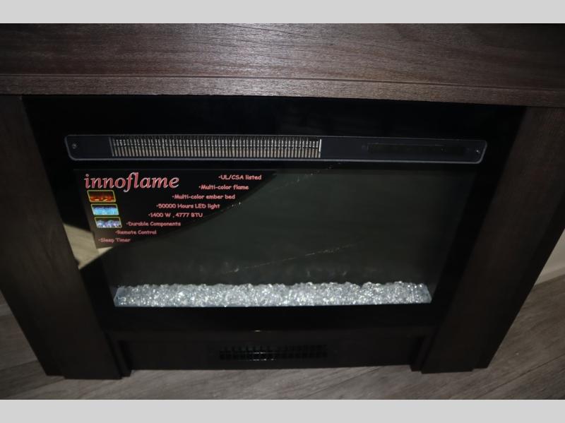 This versatile travel trailer is perfect for your family of four. The Murphy bed will provide comfortable sleeping space at night, and the jack-knife sofa will give you a place to relax during the day. Your crew can gather around the U-shaped dinette across from the fireplace, plus there is an LED TV here for movie night. This model also includes an outside kitchen under the 19' awning for an inviting outdoor living space, and two pass-through storage compartments for all your gear. And don't forget about the spacious full rear bath with plenty of counterspace, a medicine cabinet and a linen closet for clean towels!