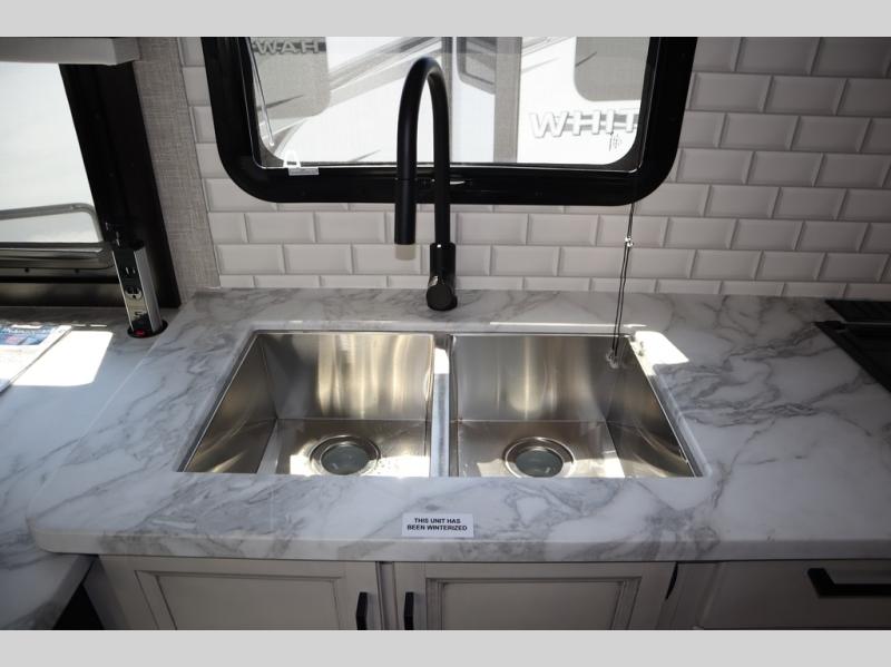 The lightweight White Hawk travel trailers by Jayco will blow you away with their roomy interiors, luxurious amenities, and durable construction. The Magnum Truss Roof System can withstand 50% more weight than the competition, and the Stronghold VBL lamination is the lightest, yet strongest in the industry. Each model includes the JAYCOMMAND "Smart RV" system with a tire pressure monitor system, plus American-made Goodyear tires for maximum durability and carrying capacity. You will love the sleek look of the front molded fiberglass cap with an automotive windshield and blue LED accent lighting, along with the frameless windows and automotive-style aluminum rims. The White Hawk travel trailers also include an arched interior ceiling, a kitchen skylight with a shade, residential vinyl flooring with cold crack resistance, and an electric fireplace.