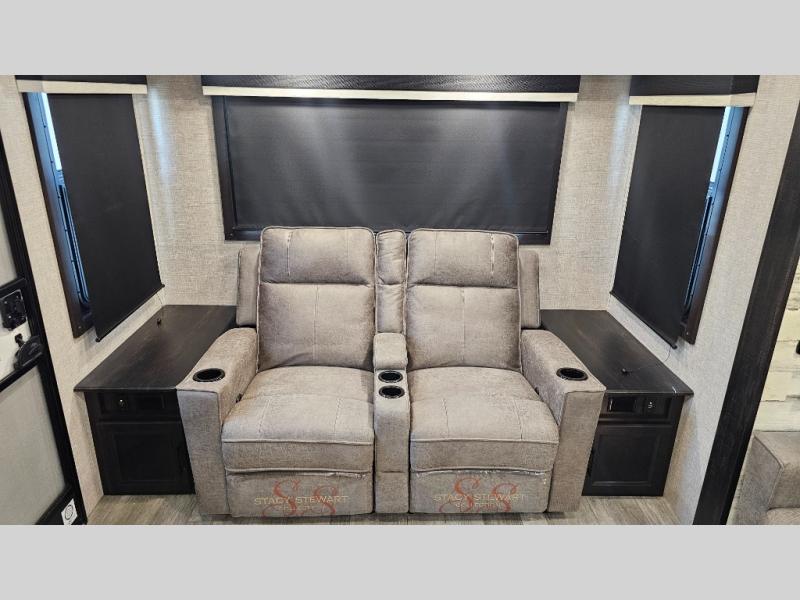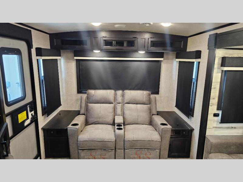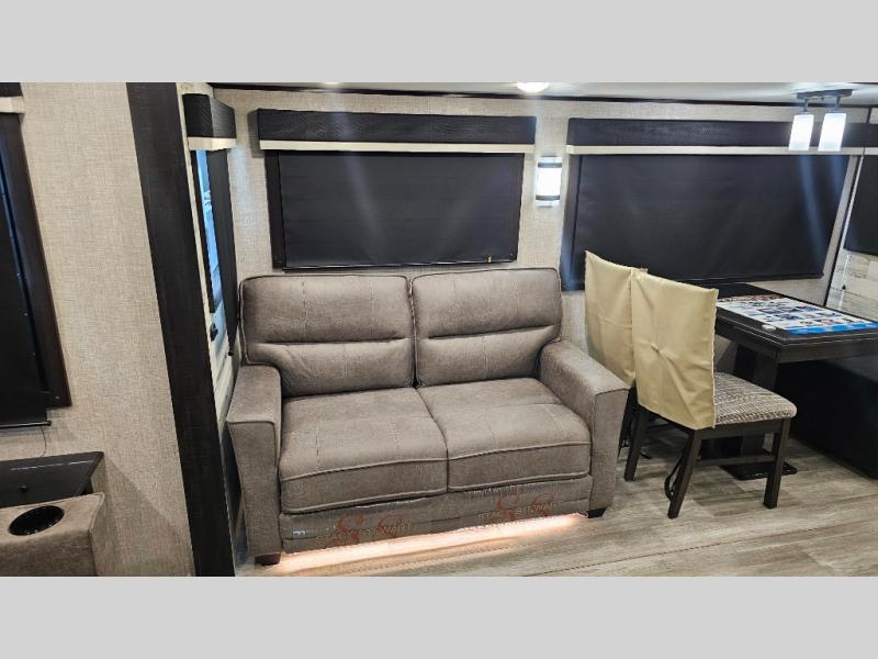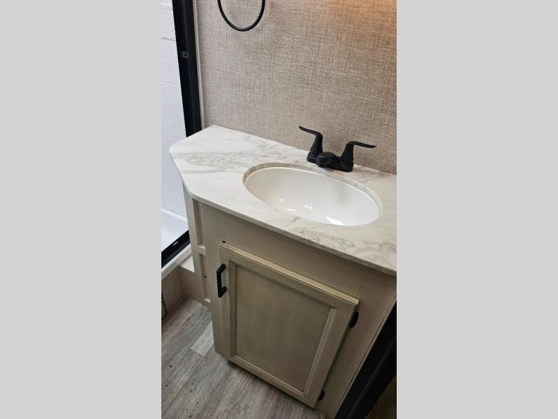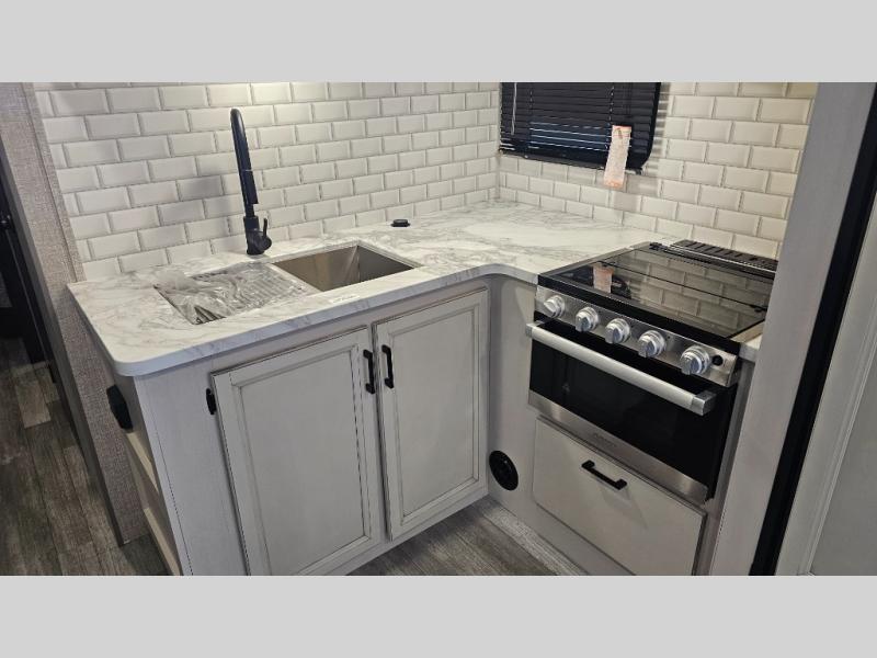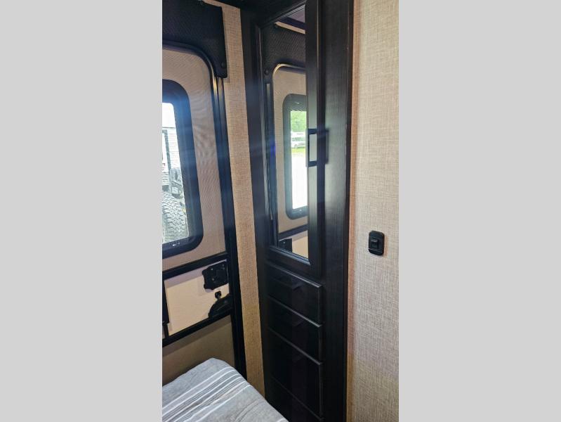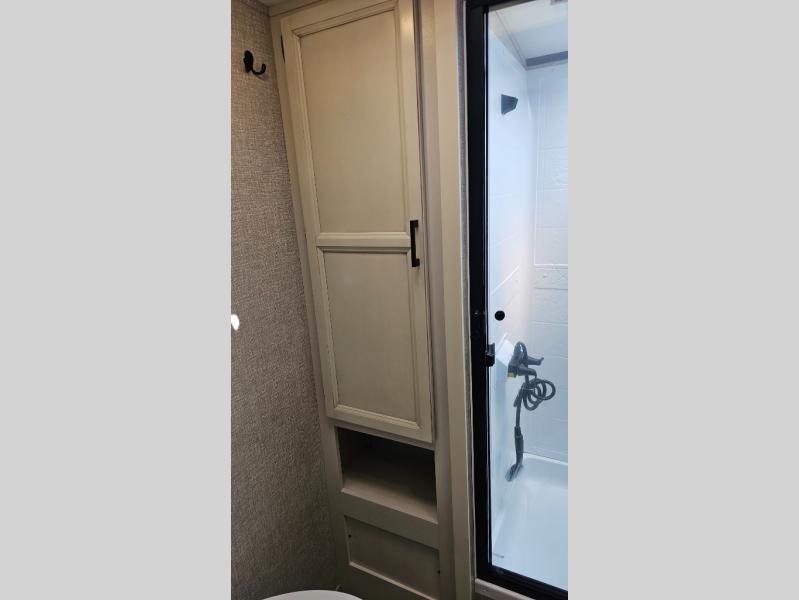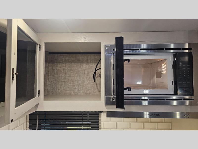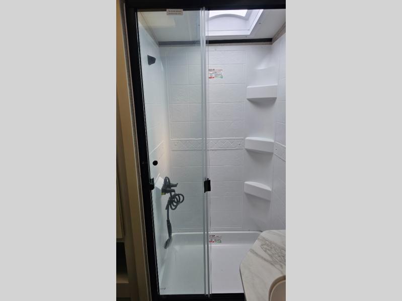 How does a dual entry travel trailer sound with sleeping space for five? Pack up and head to the lake because this model is the one! Once you arrive at your destination, set up the 20' power awning and a enjoy a cold drink in your camp chair. There is a convenient Jayport with an LP quick connect if you want to hook up your gas grill you brought along, and plenty of outside storage to bring along the fishing poles. Inside, your crew can relax on the tri-fold sofa, the booth dinette, or the rear theater seat, which is in great view of the LED TV and fireplace. Preparing meals will be easy in this White Hawk kitchen with plenty of counter space, a three burner cooktop, plus a microwave oven. The full bath includes a linen closet to store clean towels and a medicine cabinet to bring along your necessities. And don't overlook the front private bedroom with a queen bed, dual wardrobes, and its own exterior entry door for convenience!