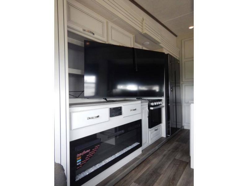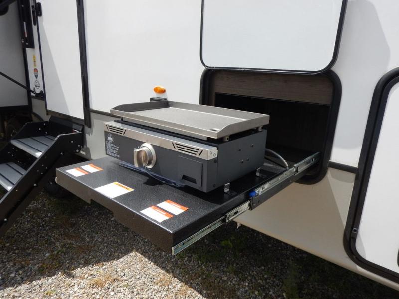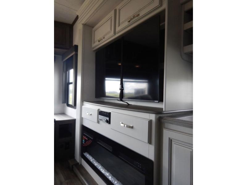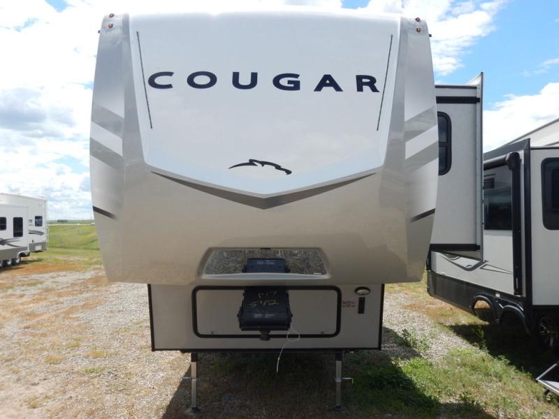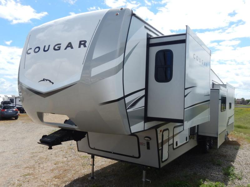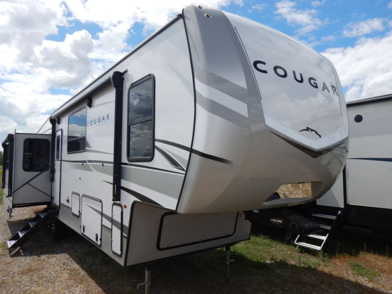 Spend more time having fun and less time worrying about your RV with the Keystone Cougar fifth wheel! These units have all that you will need for excellent vacations. The interior comes with 5/8" one-piece DynaSpan® flooring, tall slide outs for added comfort and head room, night roller shades throughout, and residential, raised-panel hardwood cabinet doors and drawers. You will also enjoy decorative crown molding, a 5,500 BTU electric fireplace with thermostat control and remote, and a Max Air exhaust fan with rain sensor. The exterior is also fully outfitted with a convenience center, friction-hinge entry door, electric four-point auto leveling system, and LCI® SolidStep® on the main entry. There is a full pass-through storage with slam-latch baggage doors, an industry-best 80-gallon fresh tank capacity, a 2" accessory hitch with 300-LB storage capacity, and an outside shower.