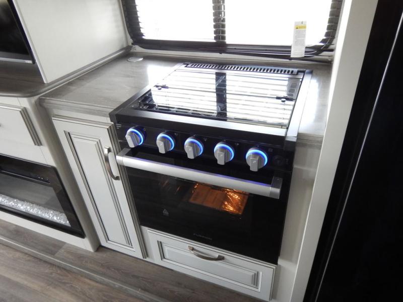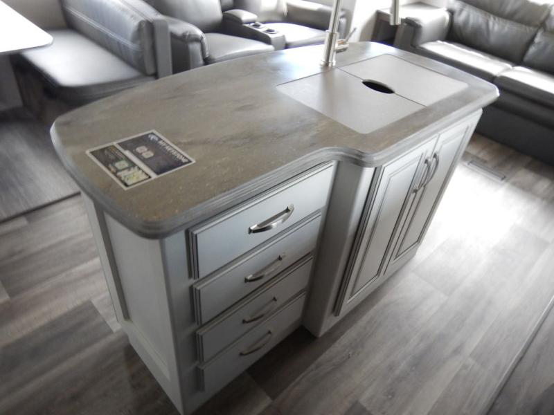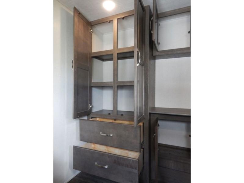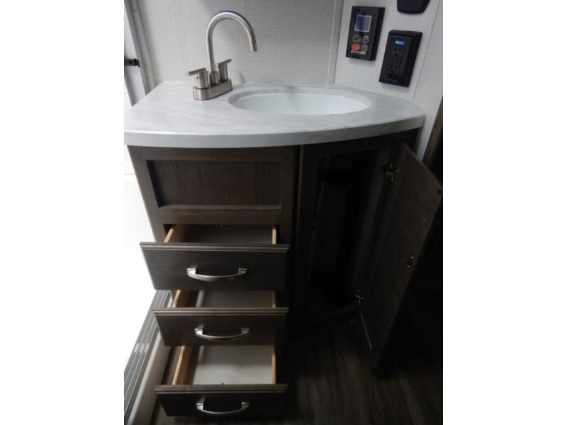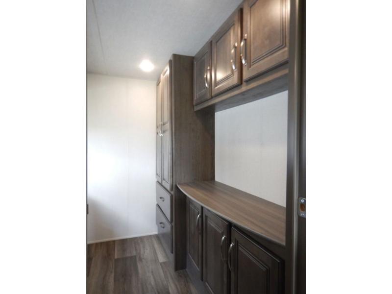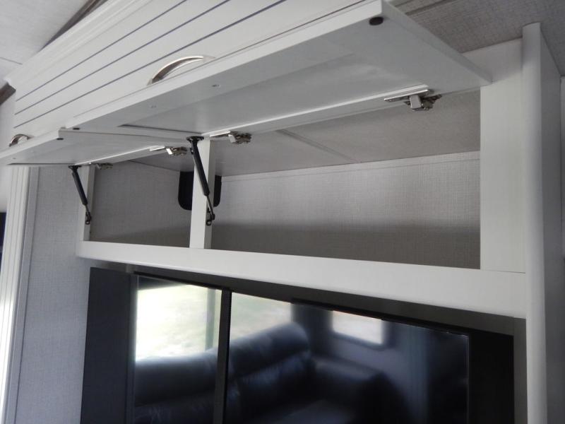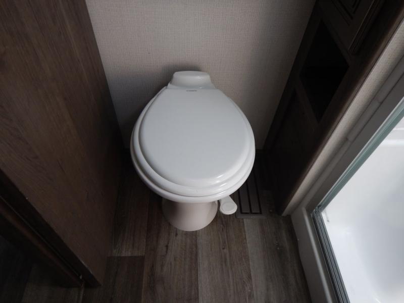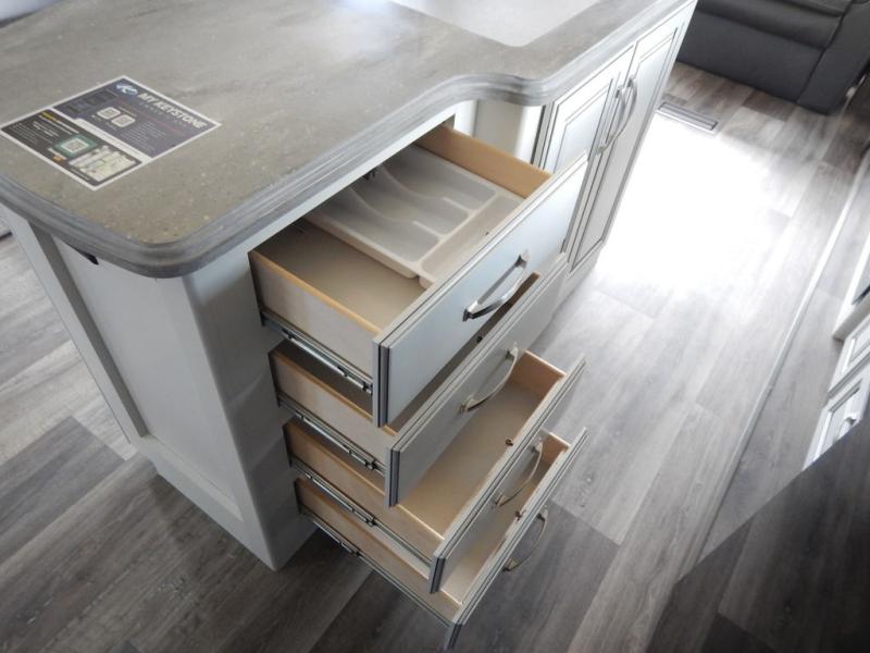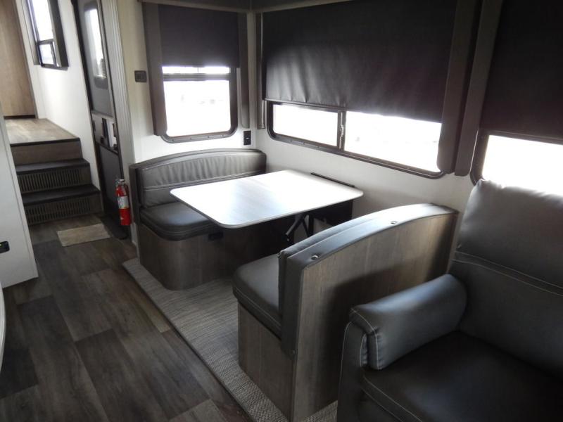 You'll love having an extra room that you can decide what to do with on this Cougar fifth wheel! Since it has a 68" tri-fold sleeper sofa and a desk, it can serve as a bedroom, living room, or even an office. Above this room is a loft which adds more sleeping space without taking up precious interior living space. And speaking of space, you'll find more of it in the main living area when you push out the opposing slides. A second tri-fold sleeper sofa sits in the living area, and there is also theater seating that you can rest on in front of the fireplace and LED HDTV. Grab a snack from the pantry, or heat up some food in the microwave if you can't wait for dinner to be ready. The full bathroom has a linen closet for your towels and washcloths, and there is also great storage in the front private bedroom with the under-bed storage, dresser, and a full-height wardrobe.