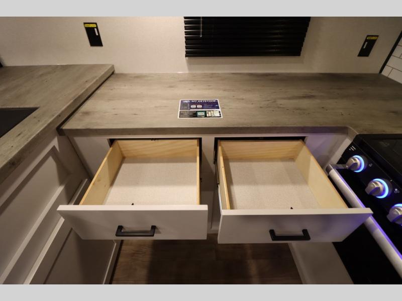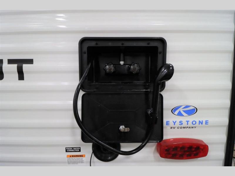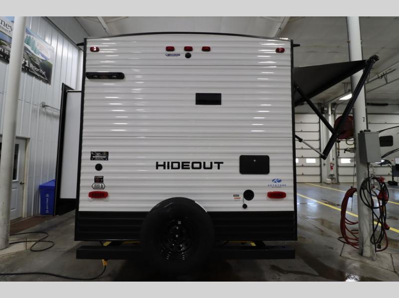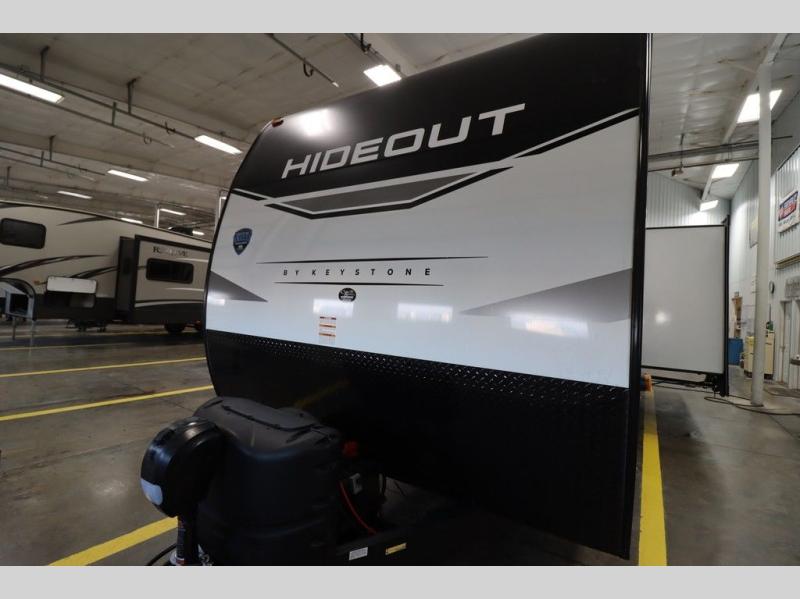 The Keystone Hideout travel trailer and destination trailer will be just what the doctor ordered for a stress-free holiday at your favorite campsite! There are a few exclusive features that you'll only find on a Keystone product, like the color-coded unified wiring, the preparations for 4G LTE and Wi-Fi, the Tuf-Lok™ thermoplastic duct joiners, the in-floor heating ducts, and the Tru-fit™ slide construction. Each model has a power awning for some shade in the afternoon, and the tinted safety glass windows will prevent the harmful UV rays from getting inside. You'll also have blackout night shades that you can close when you want privacy, and the SolarFlex 200 is a solar power system that will refill your battery to operate onboard 12V systems with just one day of peak sun exposure.