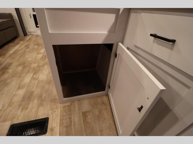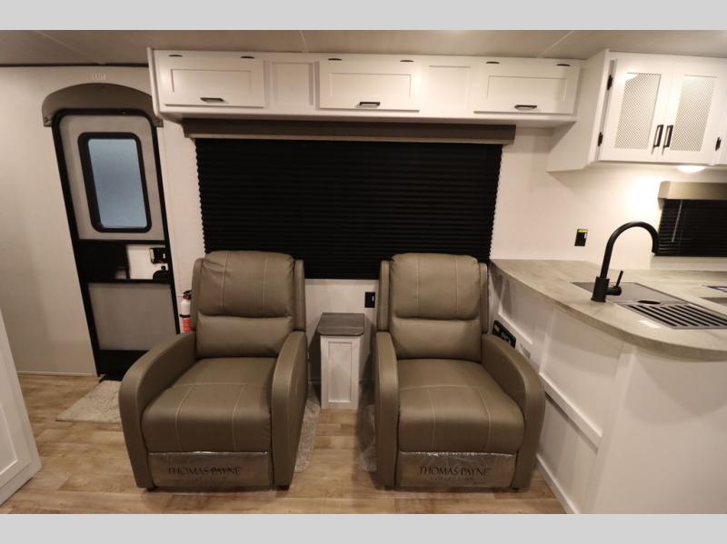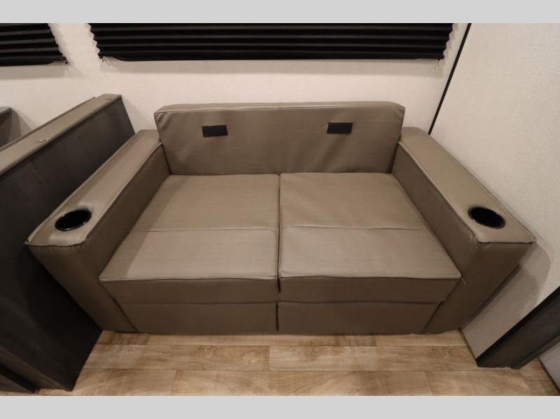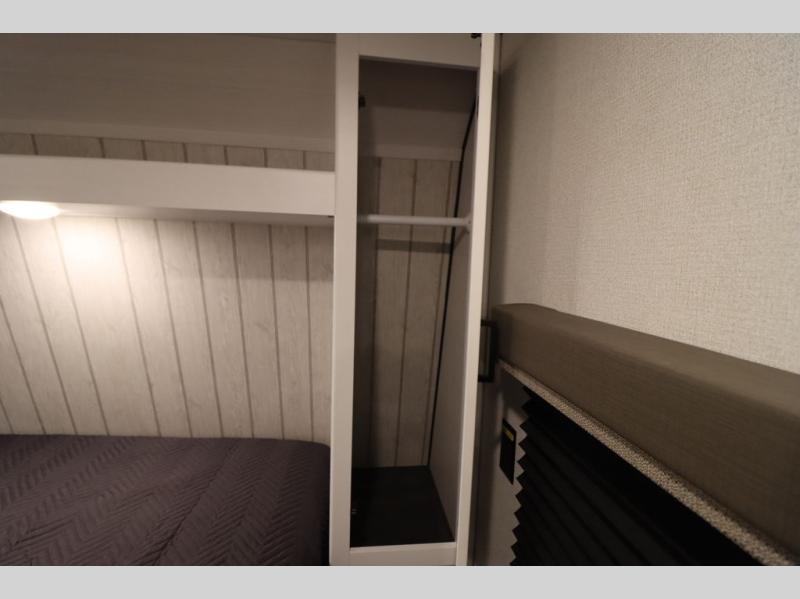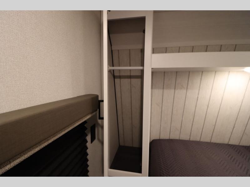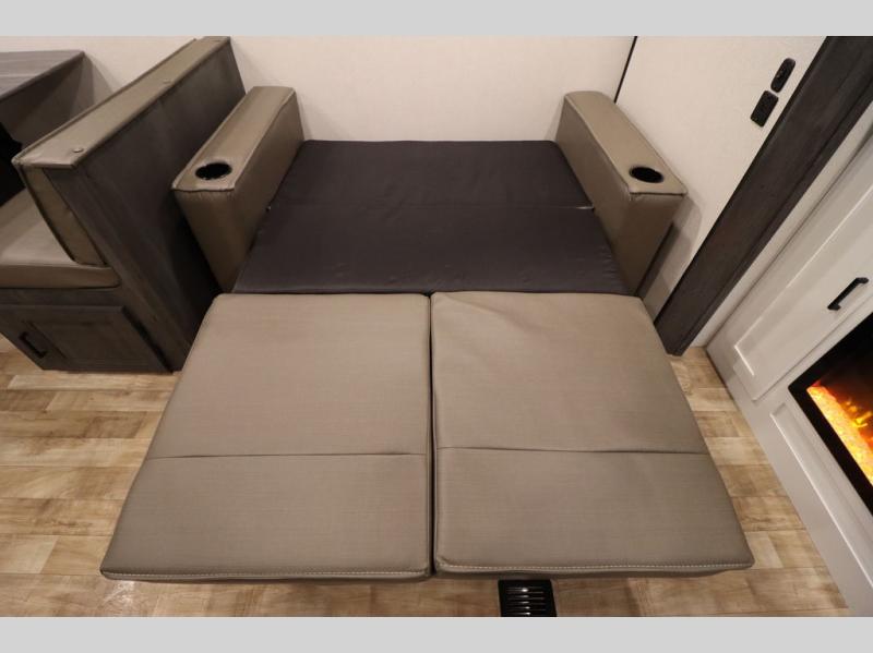 You will be so happy to take this Hideout travel trailer out to the campsite! You have two lounge chairs that you can relax in, and you can create some more lounging space by adding the optional tri-fold sleeper sofa. Not only will this option add more lounge space, but it will also add sleeping space. With a central vacuum, you'll always be able to clean up throughout your trip, and the large slide provides space to relax. A private bedroom sits at the front of this trailer, and it offers you a wardrobe and bedside closets to store your things.