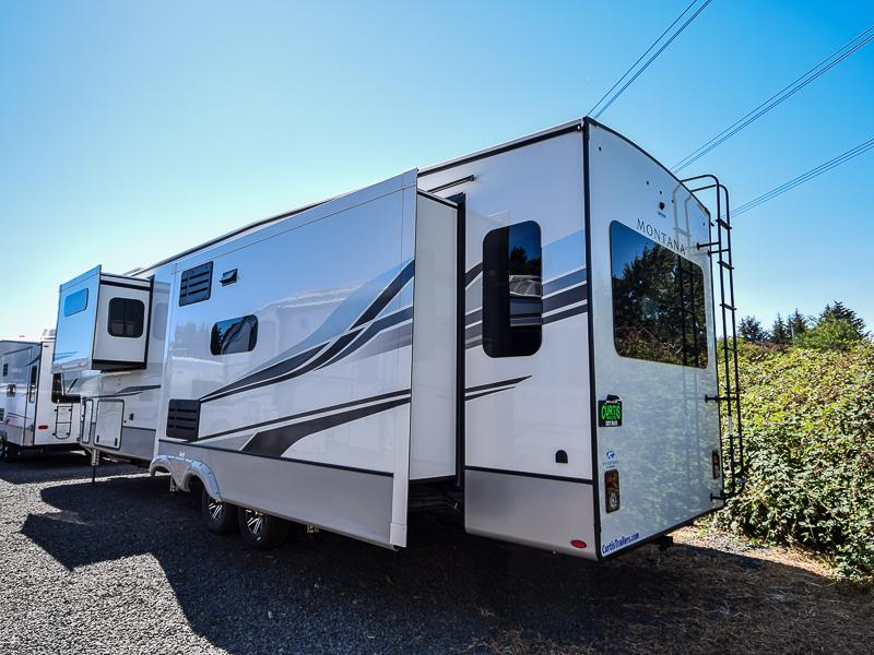 Take charge of how you camp in one of these luxurious Keystone RV Montana fifth wheels! The high quality SolarFlex 200 delivers an affordable solar energy system that eliminates the guesswork and can be built on to meet your exact needs. Keystone's exclusive 12" I-beam chassis with z-frame technology has been reengineered to be stronger, lighter and built for "the long haul". A few other construction features you will appreciate include a Road Armor suspension, 2" thick CNC routed, dual-layered lauan high gloss fiberglass sidewalls, a MaxTurn front cap with KeyShield automotive-grade paint, and a fully walkable roof with an Alpha seamless TPO membrane system. Their strikingly stylish interiors are designed with beautiful maple hardwood cabinetry, a pull-down spice rack, and an indoor/outdoor central vacuum, plus a Blade Pure airflow system for clean, quite, and cool air!