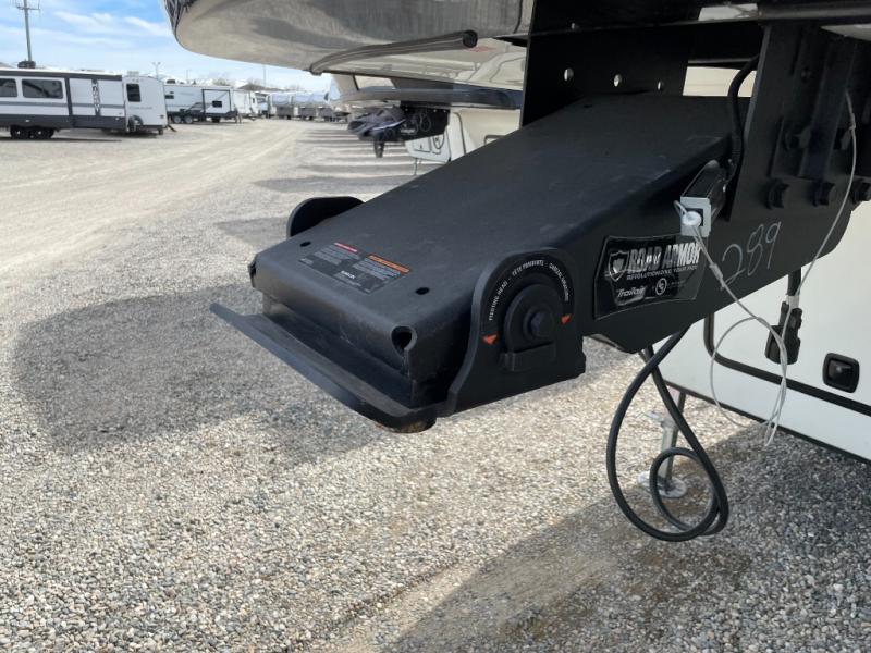 Two full bathrooms and two private bedrooms make this fifth wheel perfect for camping with friends and family. The front bedroom includes a king bed with a queen bed option, a large front wardrobe, plus stackable washer and dryer prep. The rear master bedroom has two closets plus a dresser and underbed storage, plus its own full bath with an exterior entry door for convenience. There is even a loft above the rear bedroom for even more sleeping space! Everyone can meet in the main living area/kitchen to relax on the power theater seat as the chef cooks dinner, and you can watch a show on the Smart HDTV to pass the time. The kitchen island will provide more counter space, along with the hutch that includes overhead cabinets as well. Don't let this luxury fifth wheel slip away!