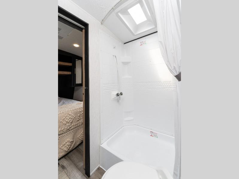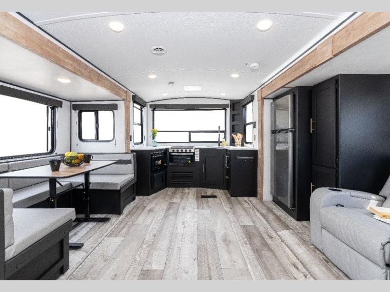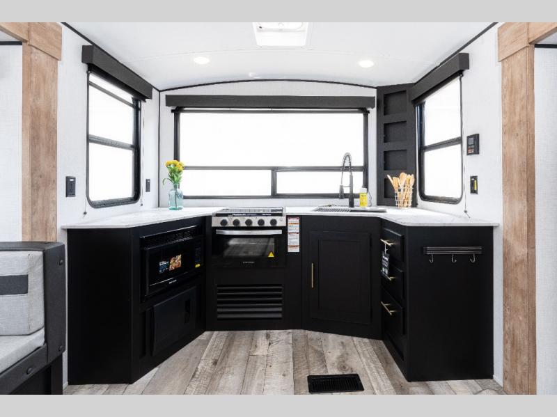 Take a first look at the brand new 2023 Springdale 281RK. This couple's coach features a rear kitchen with a full wraparound countertop with windows on all sides, letting in loads of natural light and beautiful campground views. Rather than using one slide in the living space, this coach features opposing slides, which opens up the space significantly compared to similar models. The other big advantage of this design is the shift to a walkthrough bath which not only increases its size, it adds additional privacy for the bedroom. Watch the full video for an inside look!