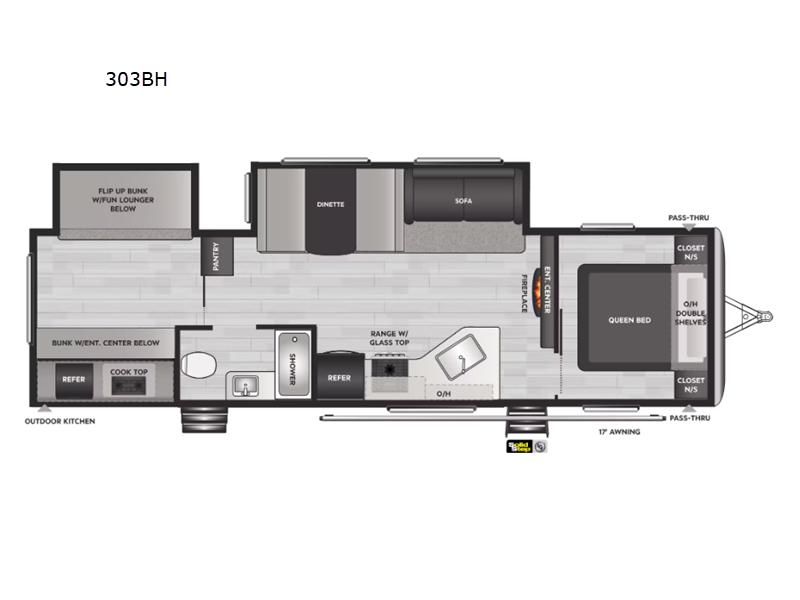 With any Keystone Springdale travel trailer, you will have a friction hinge entry door with sturdy MORryde StepAbove steps, a pass-through storage compartment for your outdoor gear, and reliable Dexter E-Z Lube axles to maneuver your Springdale down the road and into the campsites. Some of the Keystone Exclusives provide 12V color-coded wiring with easy-to-trace circuits which is better than conventional RV wiring allowing a faster diagnosis for quicker repairs, and the streamlined heat distribution that uses in-floor heat vents for more efficiency for uninterrupted air flow. Also included, the Blade high performance air flow system that delivers 30% more air flow. The interior gives you pressed kitchen countertops, pleated night shades, and designer upholstered window valances for easy care and style, and more depending on the Springdale you choose!