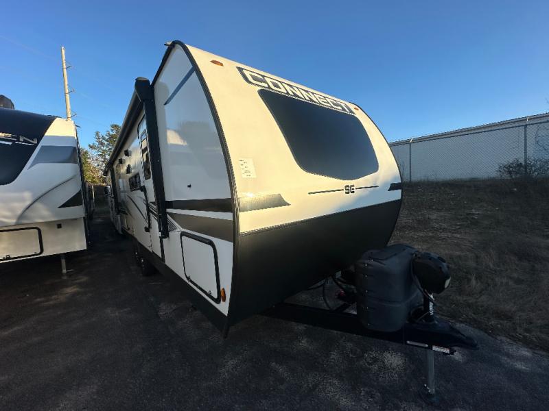 Each Connect SE travel trailer by KZ includes an NXG frame foundation that is constructed with high-strength low-alloy prime steel, uses the CNC controlled rail fabrications and camber, plus eliminates frame failures, construction issues, and corrosion! The Climate package provides added insulation to extend your camping season year-round with a fully enclosed, insulated and heated underbelly to protect the tanks and pipes. Some top features include the 17-inch range with illuminated control knobs, the seamless countertops with a deep undermount stainless steel kitchen sink including a sink cover for added countertop space, and a black high-rise faucet. You will also enjoy the KZ Engage package that is powered by OneControl to monitor and control the battery levels, the slide(s), the leveling system, the awning(s), plus the inside and outside lighting. Choose your favorite today!