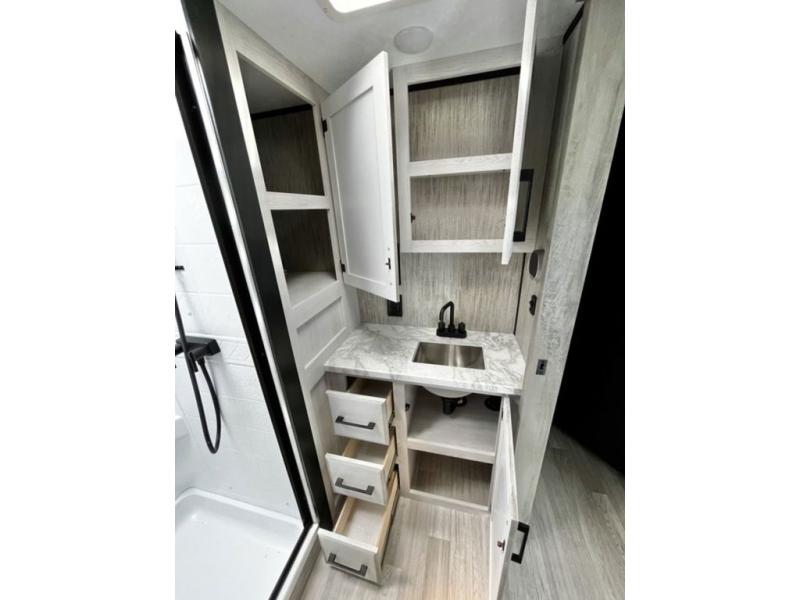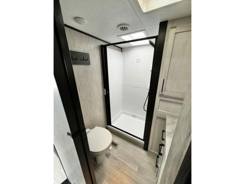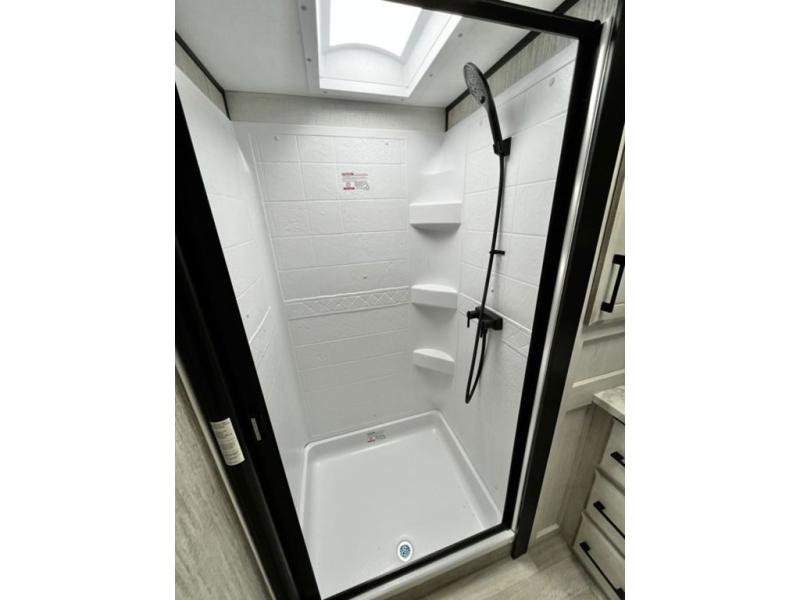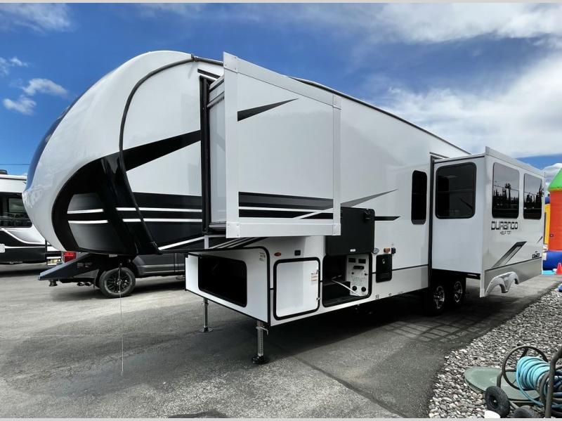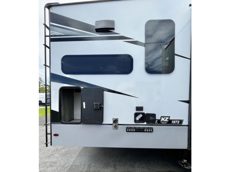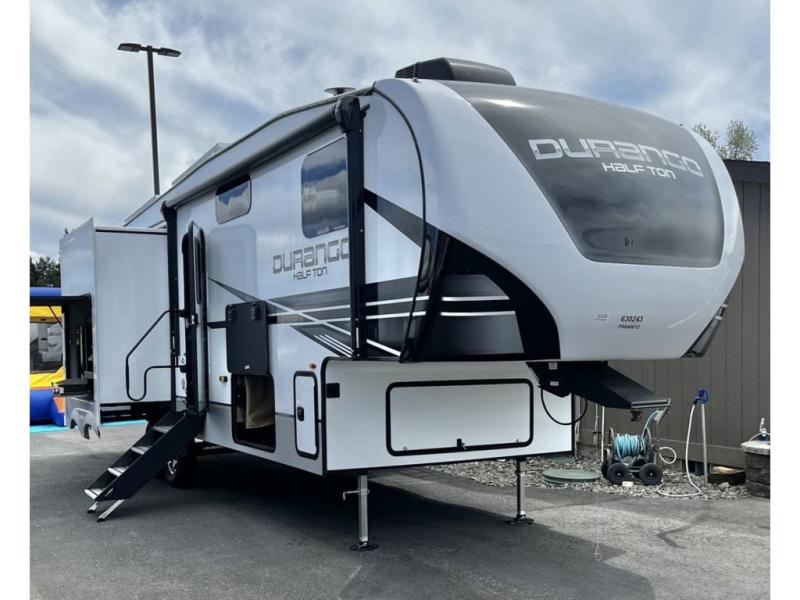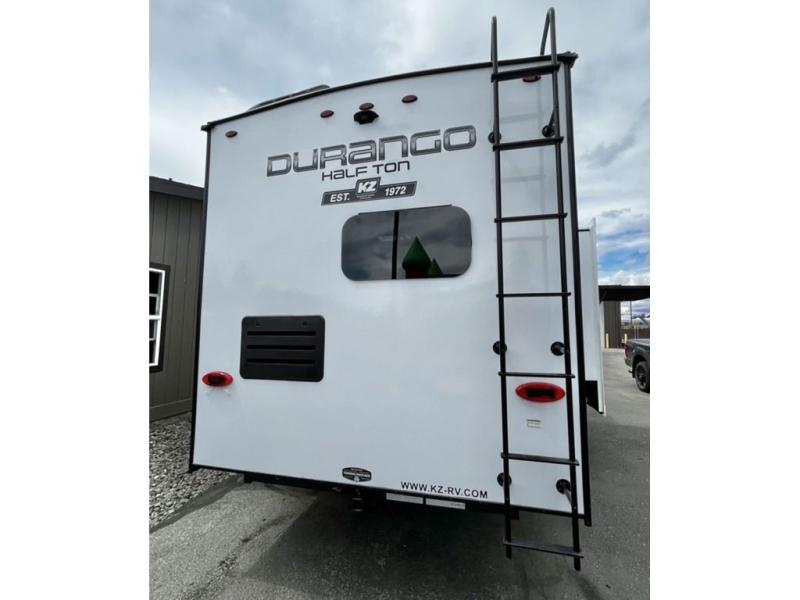 With any Durango Half-Ton fifth wheel by KZ you will enjoy lightweight towing at an affordable price! Controlling the functions of your unit will be a breeze with the KZ Engage powered by OneControl that includes a 5" touchscreen to control awnings, lights, tanks, and more. There are so many exterior conveniences to make each trip enjoyable, like the 2" towing receiver hitch with a four-pin wire harness connection, the metal latches on the baggage doors, the fully-finished, heated and sealed basement storage compartment, and the list goes on! Step inside to find modern farmhouse cabinetry, solid hardwood slide out fascia, seamless countertops with a deep undermount stainless steel sink, and many more at-home comforts. You can further customize your fifth wheel by adding one or more of the many options that are available, like the full-timers hardwood desk in place of the dinette table, the 32" exterior TV with a bracket, and the four-point auto electric leveling to name a few!