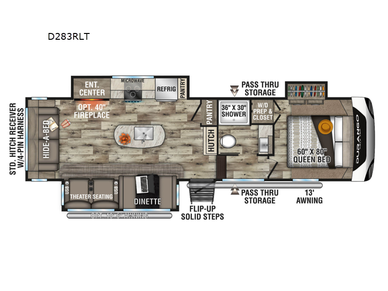 KZ Durango Half-Ton fifth wheel D283RLT highlights: