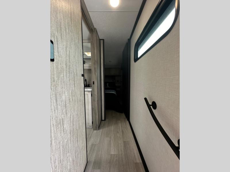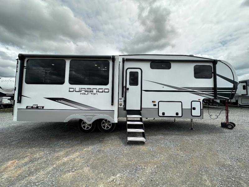 With any Durango Half-Ton fifth wheel by KZ you will enjoy lightweight towing at an affordable price! Controlling the functions of your unit will be a breeze with the KZ Engage powered by OneControl that includes a 5" touchscreen to control awnings, lights, tanks, and more. There are so many exterior conveniences to make each trip enjoyable, like the 2" towing receiver hitch with a four-pin wire harness connection, the metal latches on the baggage doors, the fully-finished, heated and sealed basement storage compartment, and the list goes on! Step inside to find modern farmhouse cabinetry, solid hardwood slide out fascia, seamless countertops with a deep undermount stainless steel sink, and many more at-home comforts. You can further customize your fifth wheel by adding one or more of the many options that are available, like the full-timers hardwood desk in place of the dinette table, the 32" exterior TV with a bracket, and the four-point auto electric leveling to name a few!