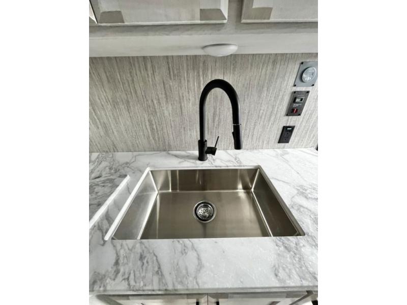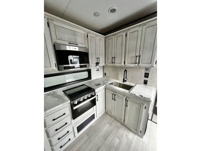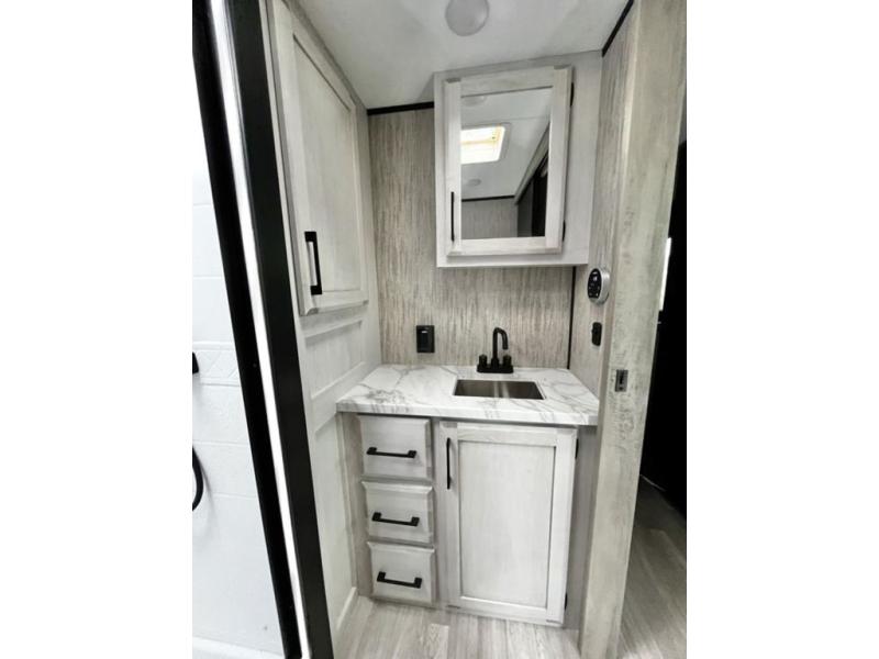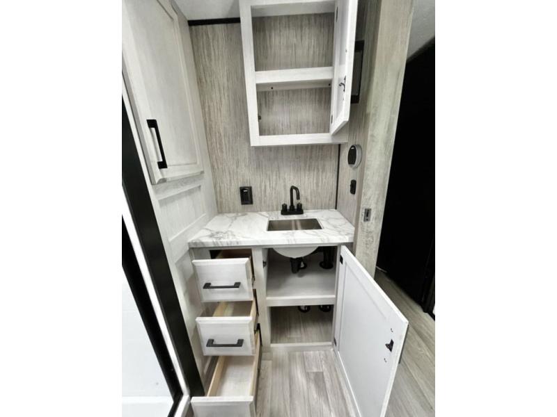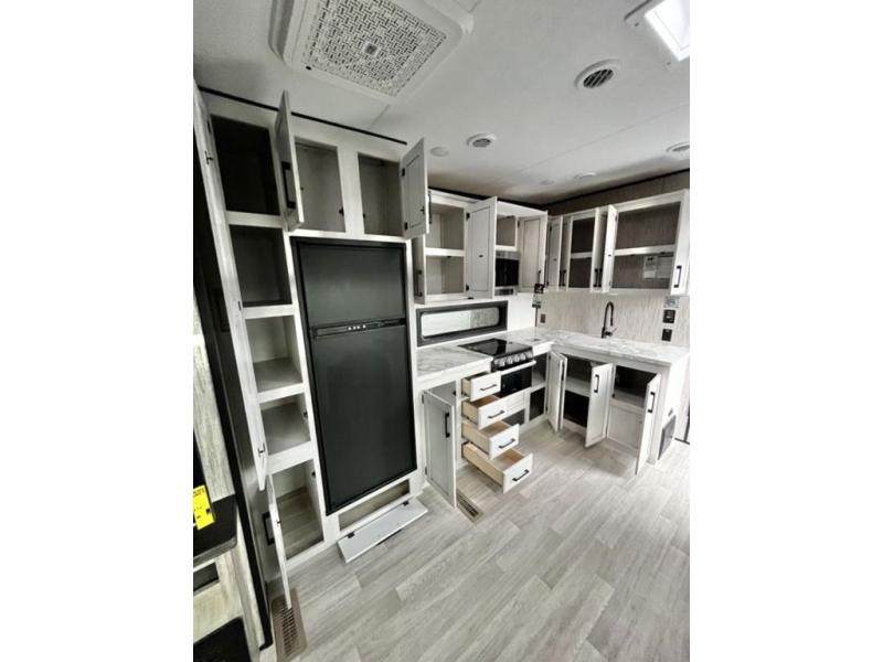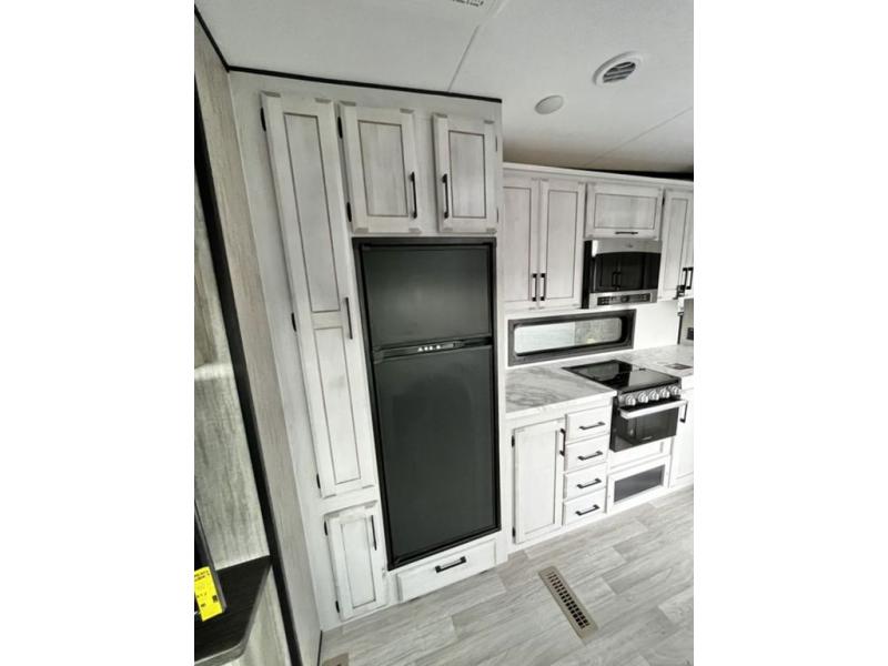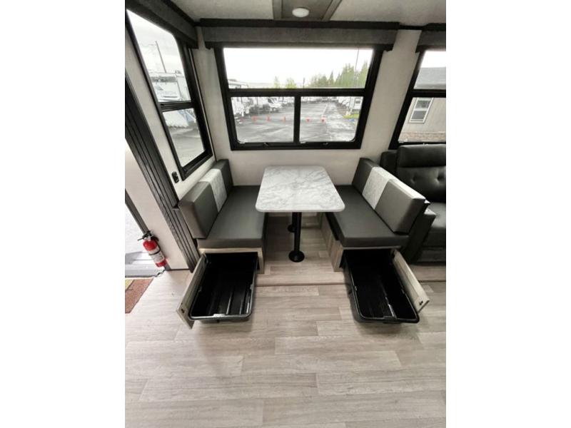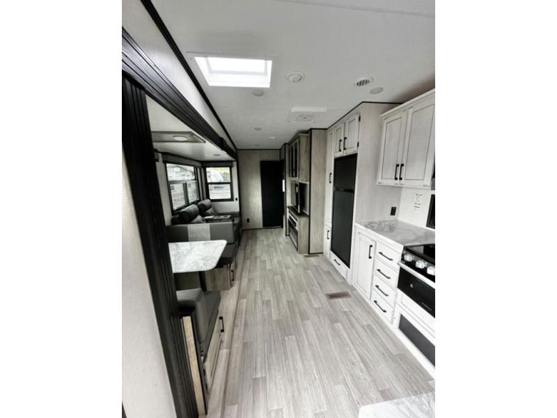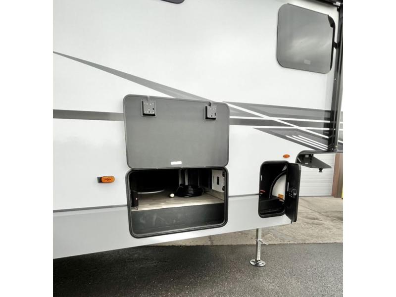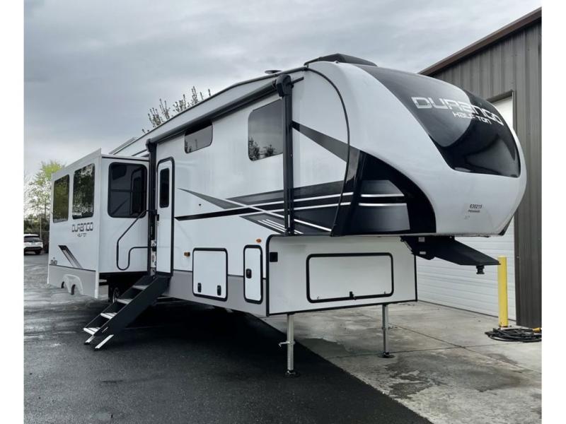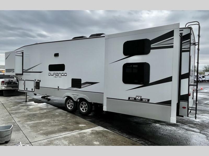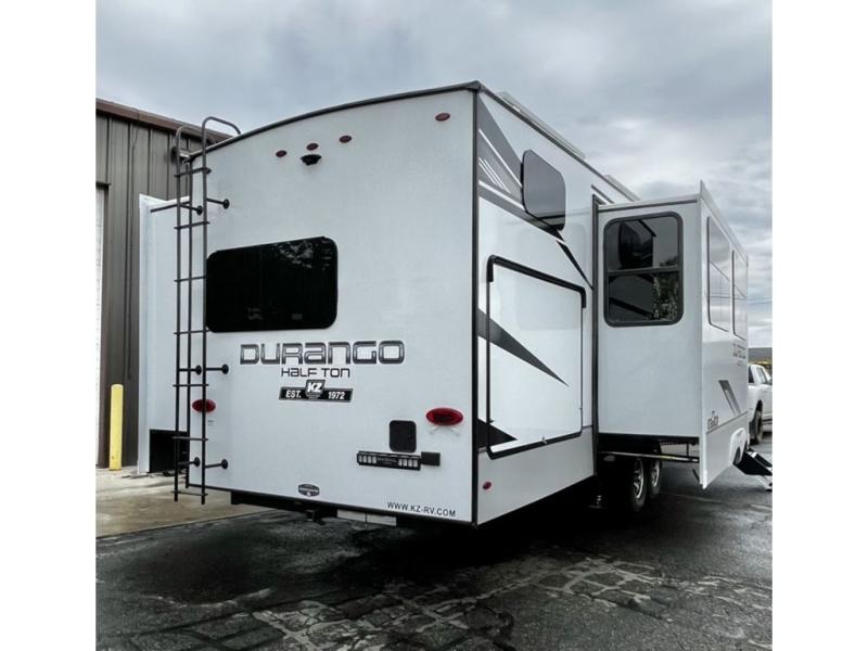 With any Durango Half-Ton fifth wheel by KZ you will enjoy lightweight towing at an affordable price! Controlling the functions of your unit will be a breeze with the KZ Engage powered by OneControl that includes a 5" touchscreen to control awnings, lights, tanks, and more. There are so many exterior conveniences to make each trip enjoyable, like the 2" towing receiver hitch with a four-pin wire harness connection, the metal latches on the baggage doors, the fully-finished, heated and sealed basement storage compartment, and the list goes on! Step inside to find modern farmhouse cabinetry, solid hardwood slide out fascia, seamless countertops with a deep undermount stainless steel sink, and many more at-home comforts. You can further customize your fifth wheel by adding one or more of the many options that are available, like the full-timers hardwood desk in place of the dinette table, the 32" exterior TV with a bracket, and the four-point auto electric leveling to name a few!