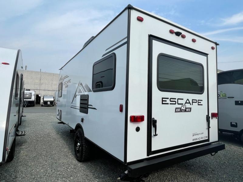 Each one of these KZ Escape ultra lightweight travel trailers were built for campers who want an ultimate adventure! An aerodynamic front profile with a front windshield makes them easier to tow, and the white exterior fiberglass with fender skirts will turn heads down the highway. A 3/8" fully walkable roof with Dicor Tufflex PVC roofing membrane and diamond plate rock guard will protect your unit. The interiors are decorated with beautiful rail style Amish-crafted cabinet doors with modern handles, seamless countertops, residential grade linoleum throughout, and pleated shades covering the tinted windows. The mandatory KZ Convenience package includes interior control switches on overhead end cabinets, a friction hinge entry door with shade prep, and an omnidirectional HDTV antenna with WiFi prep. Come find the right one for you today!