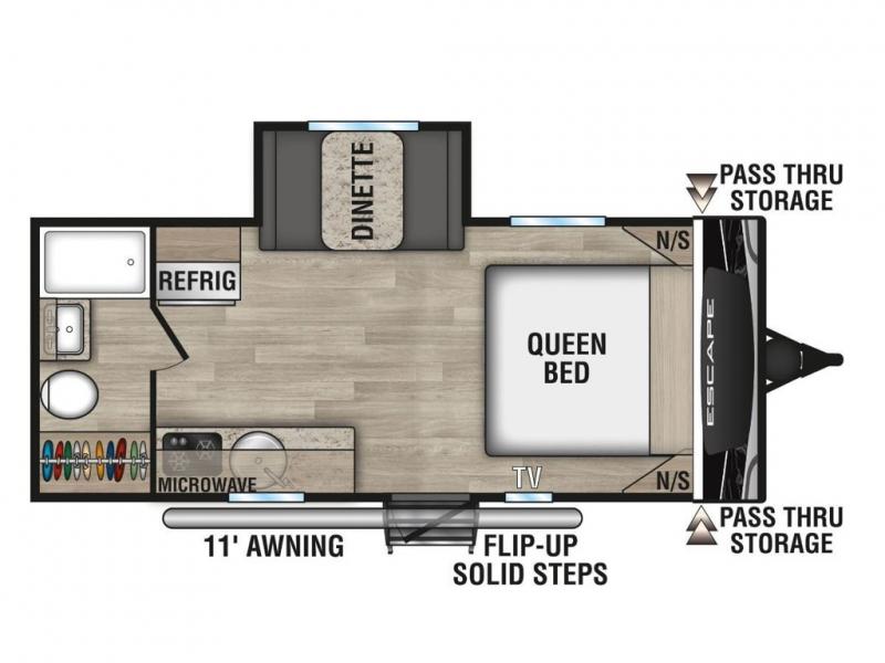 Each one of these KZ Escape ultra lightweight travel trailers were built for campers who want an ultimate adventure! An aerodynamic front profile with a front windshield makes them easier to tow, and the white exterior fiberglass with fender skirts will turn heads down the highway. A 3/8" fully walkable roof with Dicor Tufflex PVC roofing membrane and diamond plate rock guard will protect your unit. The interiors are decorated with beautiful rail style Amish-crafted cabinet doors with modern handles, seamless countertops, residential grade linoleum throughout, and pleated shades covering the tinted windows. The mandatory KZ Convenience package includes interior control switches on overhead end cabinets, a friction hinge entry door with shade prep, and an omnidirectional HDTV antenna with WiFi prep. Come find the right one for you today!