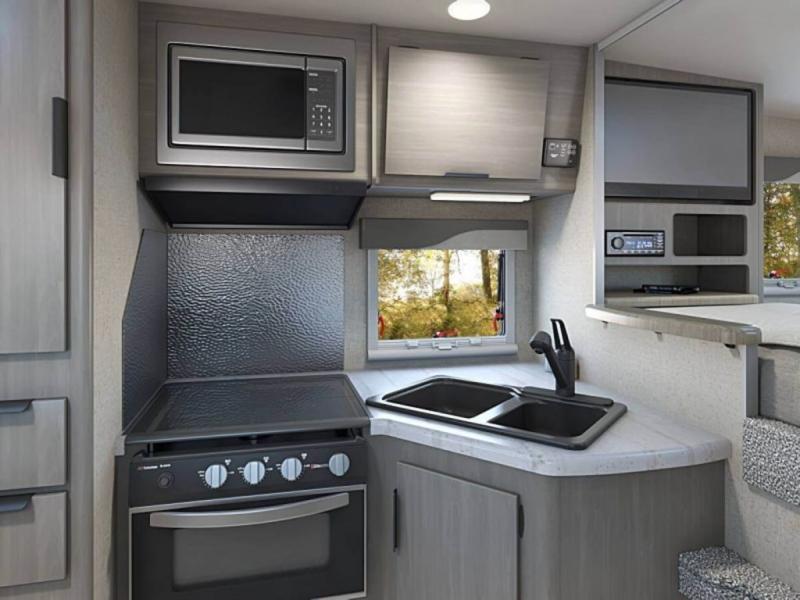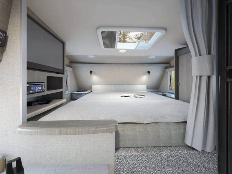 There's no better time than now to start camping in a Lance truck camper! Each model is constructed with a laminated fiberglass bonded exterior, a one-piece roof membrane, and block foam insulation throughout to enjoy four seasons of camping. You'll appreciate a keyless entry, an exterior wash station, electric remote camper jacks, and eye-catching mountain scene graphics. Inside, there are flat panel cabinet doors, Euro window treatments with a combo screen and shade, plus a convenient key hanger. There is also a dual pane bath skylight, a solid surface galley countertop, a stainless steel microwave, plus many more interior comforts. And don't forget to check out the select optional features available to further customize your truck camper!