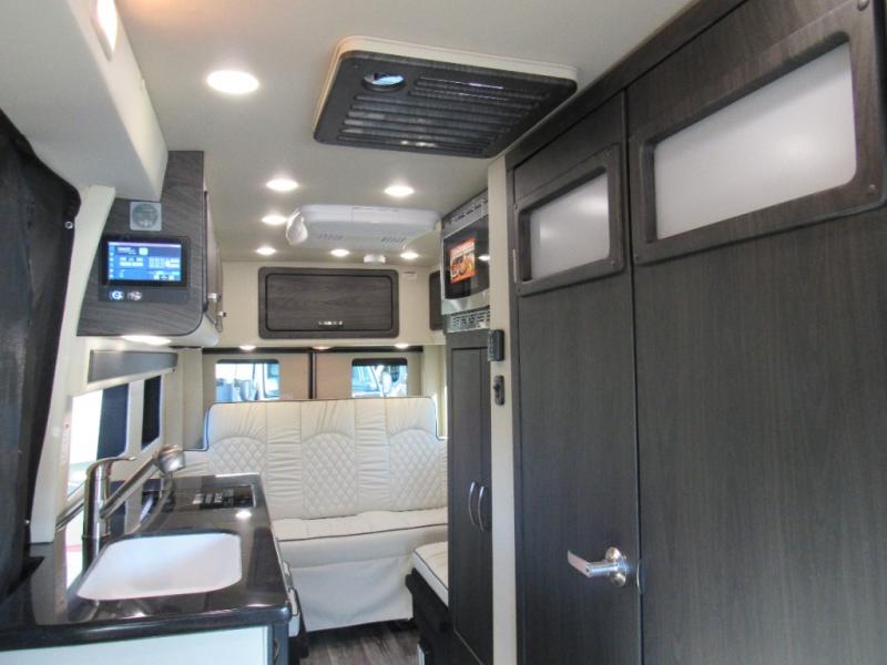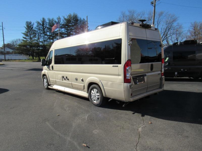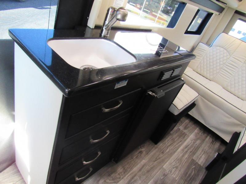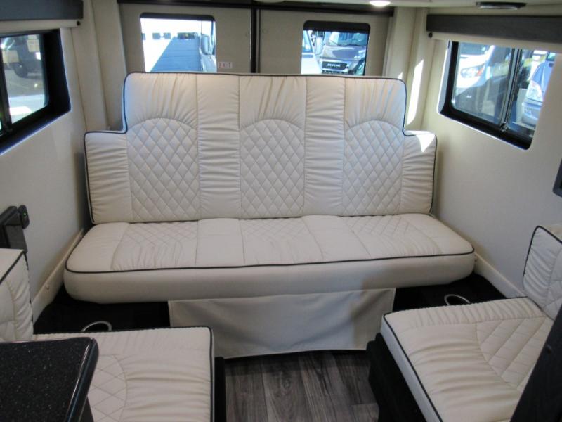 Each Legend Class B gas motorhome by Midwest Automotive Designs offers a Ram ProMaster chassis, a ECO charging system, a 100 watt rooftop solar charging system, a rear hitch with a wiring package if you need to pull a trailer or such, and a rear back-up camera system for easy parking. Inside you can ride and stay in luxury on leather seating while appreciating the custom dash and door handle wood grain upgrade, the custom Maybach style seating with seat belts, and the kitchen amenities to make warm meals. Start traveling today in your own Legend!